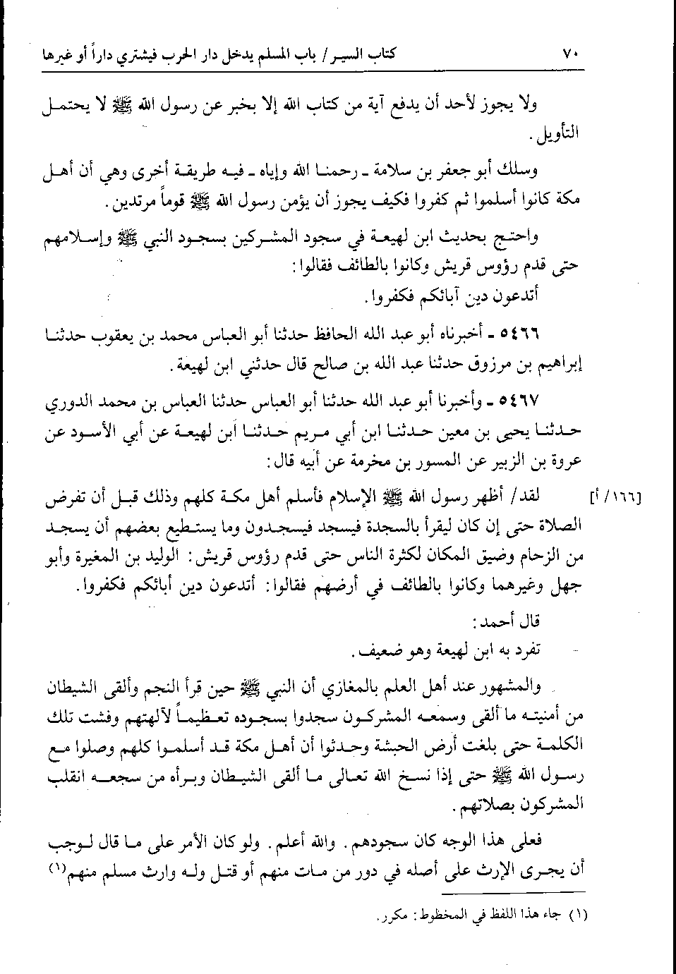 واحتج بحديث ابن لهيعة في سجود المشركين بسجود النبي صلى الله عليه وسلم وإسلامهم حتى قدم رؤوس قريش وكانوا بالطائف فقالوا : أتدعون دين آبائكم فكفروا.