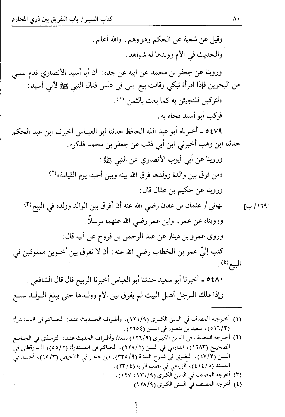 وروينا عن حكيم بن عقال قال : نهاني 169 ب عثمان بن عفان رضي الله عنه أن أفرق بين الوالد وولده في البيع.