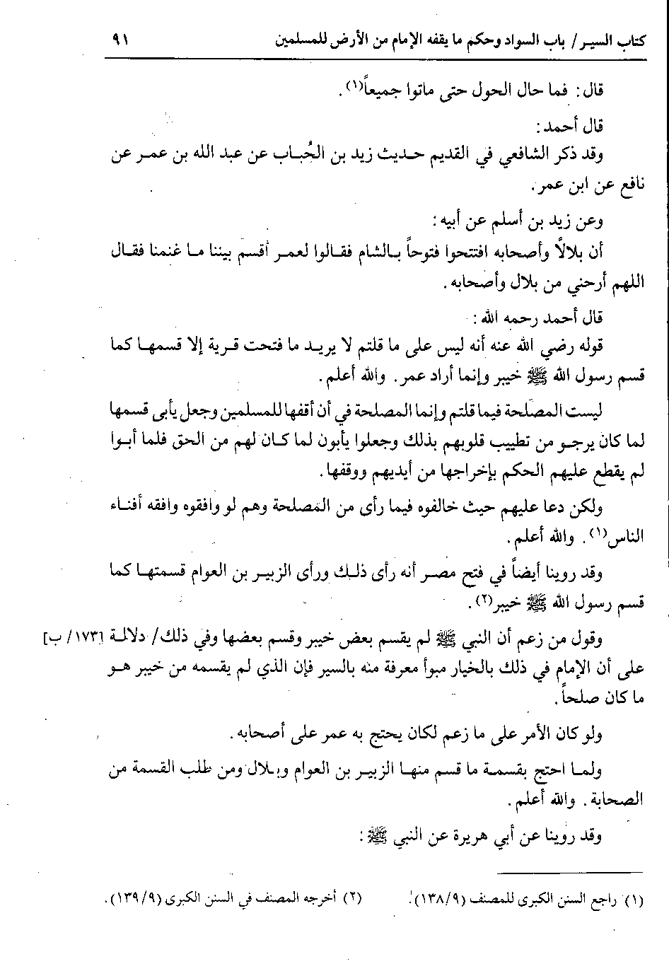 قال أحمد رحمه الله : قوله رضي الله عنه أنه ليس على ما قلتم لا يريد ما فتحت قرية إلا قسمها كما قسم رسول الله صلى الله عليه وسلم خيبر وإنما أراد عمر . والله أعلم.
