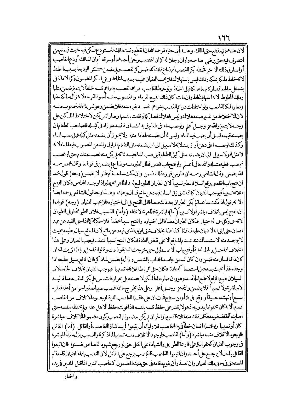 (وَجْهُ) قَوْلِهِمَا أَنَّ الْفَتْحَ لَيْسَ بِإِتْلَافٍ مُبَاشَرَةً وَلَا تَسْبِيبًا (أَمَّا) الْمُبَاشَرَةُ فَظَاهِرَةُ الِانْتِفَاءِ.