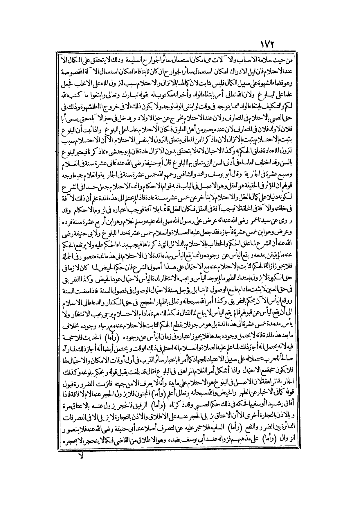 مِنْ حَيْثُ سَلَامَةِ الْأَسْبَابِ وَالْآلَاتِ هِيَ إمْكَانُ اسْتِعْمَالِ سَائِرِ الْجَوَارِحِ السَّلِيمَةِ، وَذَلِكَ لَا يَتَحَقَّقُ عَلَى الْكَمَالِ إلَّا عِنْدَ الِاحْتِلَامِ، فَإِنْ قِيلَ الْإِدْرَاكُ إمْكَانُ اسْتِعْمَالِ سَائِرِ الْجَوَارِحِ إنْ كَانَ ثَابِتًا، فَأَمَّا إمْكَانُ اسْتِعْمَالِ الْآلَةِ الْمَخْصُوصَةِ وَهُوَ قَضَاءُ الشَّهْوَةِ عَلَى سَبِيلِ الْكَمَالِ فَلَيْسَ بِثَابِتٍ؛ لِأَنَّ كَمَالَهَا بِالْإِنْزَالِ وَالِاحْتِلَامِ سَبَبٌ لِنُزُولِ الْمَاءِ عَلَى الْأَغْلَبِ فَجُعِلَ عَلَمًا عَلَى الْبُلُوغِ؛ وَلِأَنَّ اللَّهَ تَعَالَى أَمَرَ بِابْتِغَاءِ الْوَلَدِ وَأَخْبَرَ أَنَّهُ مَكْتُوبٌ لَهُ بِقَوْلِهِ تَبَارَكَ وَتَعَالَى {وَابْتَغُوا مَا كَتَبَ اللَّهُ لَكُمْ} [البقرة: 187] وَالتَّكْلِيفُ بِابْتِغَاءِ الْوَلَدِ إنَّمَا يَتَوَجَّهُ فِي وَقْتٍ لَوْ ابْتَغَى الْوَلَدَ لَوُجِدَ، وَلَا يَكُونُ ذَلِكَ إلَّا فِي خُرُوجِ الْمَاءِ لِلشَّهْوَةِ وَذَلِكَ فِي حَقِّ الصَّبِيِّ بِالِاحْتِلَامِ فِي الْمُتَعَارَفِ، وَلِأَنَّ عِنْدَ الِاحْتِلَامِ يَخْرُجُ عَنْ حَيِّزِ الْأَوْلَادِ وَيَدْخُلُ فِي حَيِّزِ الْآبَاءِ حَتَّى يُسَمَّى أَبَا فُلَانٍ لَا وَلَدَ فُلَانٍ فِي الْمُتَعَارَفِ؛ لِأَنَّ عِنْدَهُ يَصِيرُ مِنْ أَهْلِ الْعَلُوقِ فَكَانَ الِاحْتِلَامُ عَلَمًا عَلَى الْبُلُوغِ، وَإِذَا ثَبَتَ أَنَّ الْبُلُوغَ يَثْبُتُ بِالِاحْتِلَامِ يَثْبُتُ بِالْإِنْزَالِ؛ لِأَنَّ مَا ذَكَرْنَا مِنْ الْمَعَانِي يَتَعَلَّقُ بِالنُّزُولِ لَا بِنَفْسِ الِاحْتِلَامِ إلَّا أَنَّ الِاحْتِلَامَ سَبَبٌ لِنُزُولِ الْمَاءِ عَادَةً فَعُلِّقَ الْحُكْمُ بِهِ، وَكَذَا الْإِحْبَالُ؛ لِأَنَّهُ لَا يَتَحَقَّقُ بِدُونِ الْإِنْزَالِ عَادَةً فَإِنْ لَمْ يُوجَدْ شَيْءٌ مِمَّا ذَكَرْنَا فَيُعْتَبَرُ الْبُلُوغُ بِالسِّنِّ، وَقَدْ اخْتَلَفَ الْعُلَمَاءُ فِي أَدْنَى السِّنِّ الَّتِي يَتَعَلَّقُ بِهَا الْبُلُوغُ قَالَ أَبُو حَنِيفَةَ - رَضِيَ اللَّهُ عَنْهُ -: ثَمَانِيَ عَشْرَةَ سَنَةً فِي الْغُلَامِ وَسَبْعَ عَشْرَةَ فِي الْجَارِيَةِ، وَقَالَ أَبُو يُوسُفَ وَمُحَمَّدٌ وَالشَّافِعِيُّ - رَحِمَهُمُ اللَّهُ - خَمْسَ عَشْرَةَ سَنَةً فِي الْجَارِيَةِ وَالْغُلَامِ جَمِيعًا وَجْهُ قَوْلِهِمْ: أَنَّ الْمُؤَثِّرَ فِي الْحَقِيقَةِ هُوَ الْعَقْلُ، وَهُوَ الْأَصْلُ فِي الْبَابِ إذْ بِهِ قِوَامُ الْأَحْكَامِ، وَإِنَّمَا الِاحْتِلَامُ جُعِلَ حَدًّا فِي الشَّرْعِ لِكَوْنِهِ دَلِيلًا عَلَى كَمَالِ الْعَقْلِ، وَالِاحْتِلَامُ لَا يَتَأَخَّرُ عَنْ خَمْسَ عَشْرَةَ سَنَةً عَادَةً فَإِذَا لَمْ يَحْتَلِمْ إلَى هَذِهِ الْمُدَّةِ عُلِمَ أَنَّ ذَلِكَ لِآفَةٍ فِي خِلْقَتِهِ، وَالْآفَةُ فِي الْخِلْقَةِ لَا تُوجِبُ آفَةً فِي الْعَقْلِ فَكَانَ الْعَقْلُ قَائِمًا بِلَا آفَةٍ فَوَجَبَ اعْتِبَارُهُ فِي لُزُومِ الْأَحْكَامِ، وَقَدْ رُوِيَ عَنْ سَيِّدِنَا عُمَرَ - رَضِيَ اللَّهُ عَنْهُ - أَنَّهُ «عُرِضَ عَلَى رَسُولِ اللَّهِ - صَلَّى اللَّهُ عَلَيْهِ وَسَلَّمَ - غُلَامٌ وَهُوَ ابْنُ أَرْبَعَ عَشْرَةَ سَنَةً فَرَدَّهُ وَعُرِضَ وَهُوَ ابْنُ خَمْسَ عَشْرَةَ فَأَجَازَهُ» فَقَدْ جَعَلَ - عَلَيْهِ الصَّلَاةُ وَالسَّلَامُ - خَمْسَ عَشْرَةَ حَدًّا لِلْبُلُوغِ، وَلِأَبِي حَنِيفَةَ - رَضِيَ اللَّهُ عَنْهُ - أَنَّ الشَّرْعَ لَمَّا عَلَّقَ الْحُكْمَ وَالْخِطَابَ بِالِاحْتِلَامِ بِالدَّلَائِلِ الَّتِي ذَكَرْنَاهَا فَيَجِبُ بِنَاءُ الْحُكْمِ عَلَيْهِ، وَلَا يَرْتَفِعُ الْحُكْمُ عَنْهُ مَا لَمْ يَتَيَقَّنْ بِعَدَمِهِ، وَيَقَعُ الْيَأْسُ عَنْ وُجُودِهِ، وَإِنَّمَا يَقَعُ الْيَأْسُ بِهَذِهِ الْمُدَّةِ؛ لِأَنَّ الِاحْتِلَامَ إلَى ه