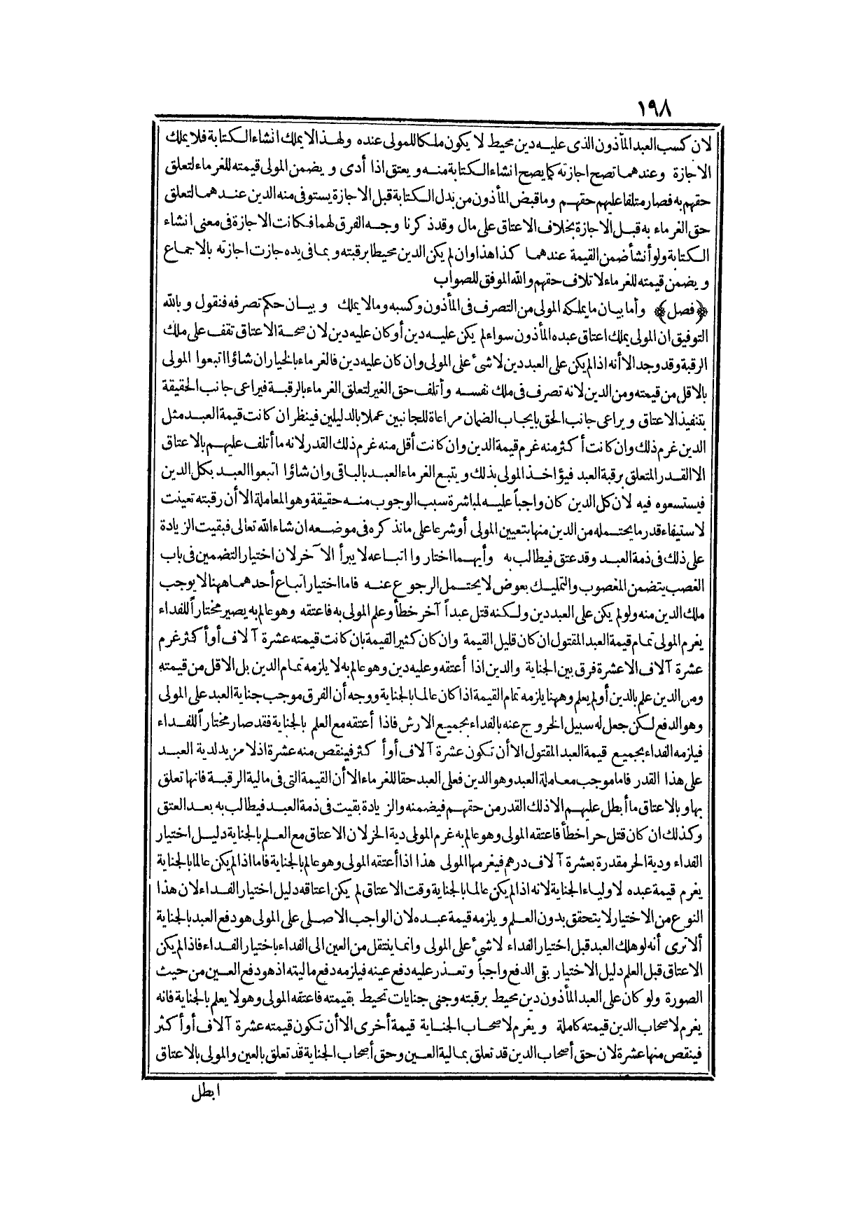 كَثِيرٍ مِنْ الْأَشْيَاءِ بِظُرُوفِهَا فَلَوْ عَلِمَ النَّاسُ أَنَّهُ لَا يَصِحُّ إقْرَارُهُ بِالْعَيْنِ لَامْتَنَعُوا عَنْ تَسْلِيمِ الْأَعْيَانِ إلَيْهِ فَلَا يَلْتَئِمُ أَمْرُ التِّجَارَةِ وَلَا يَمْلِكُ الْإِقْرَارَ بِالْجِنَايَةِ؛ لِأَنَّ الْإِقْرَارَ بِالْجِنَايَةِ لَيْسَ مِنْ ضَرُورَاتِ التِّجَارَةِ فَلَا يَتَنَاوَلُهُ الْإِذْنُ بِالتِّجَارَةِ فَلَا يَصِحُّ مِنْهُ وَلَا يُطَالَبُ بِهَا بَعْدَ الْعَتَاقِ أَيْضًا؛ لِأَنَّ مُوجَبَ الْجِنَايَةِ يَلْزَمُ الْمَوْلَى دُونَ الْعَبْدِ فَكَانَ ذَلِكَ شَهَادَةً عَلَى الْمَوْلَى لَا إقْرَارًا عَلَى نَفْسِهِ فَلَمْ يَصِحَّ أَصْلًا إلَّا إذَا صَدَّقَهُ الْمَوْلَى فَيَجُوزُ عَلَيْهِ، وَلَا يَجُوزُ عَلَى الْغُرَمَاءِ.