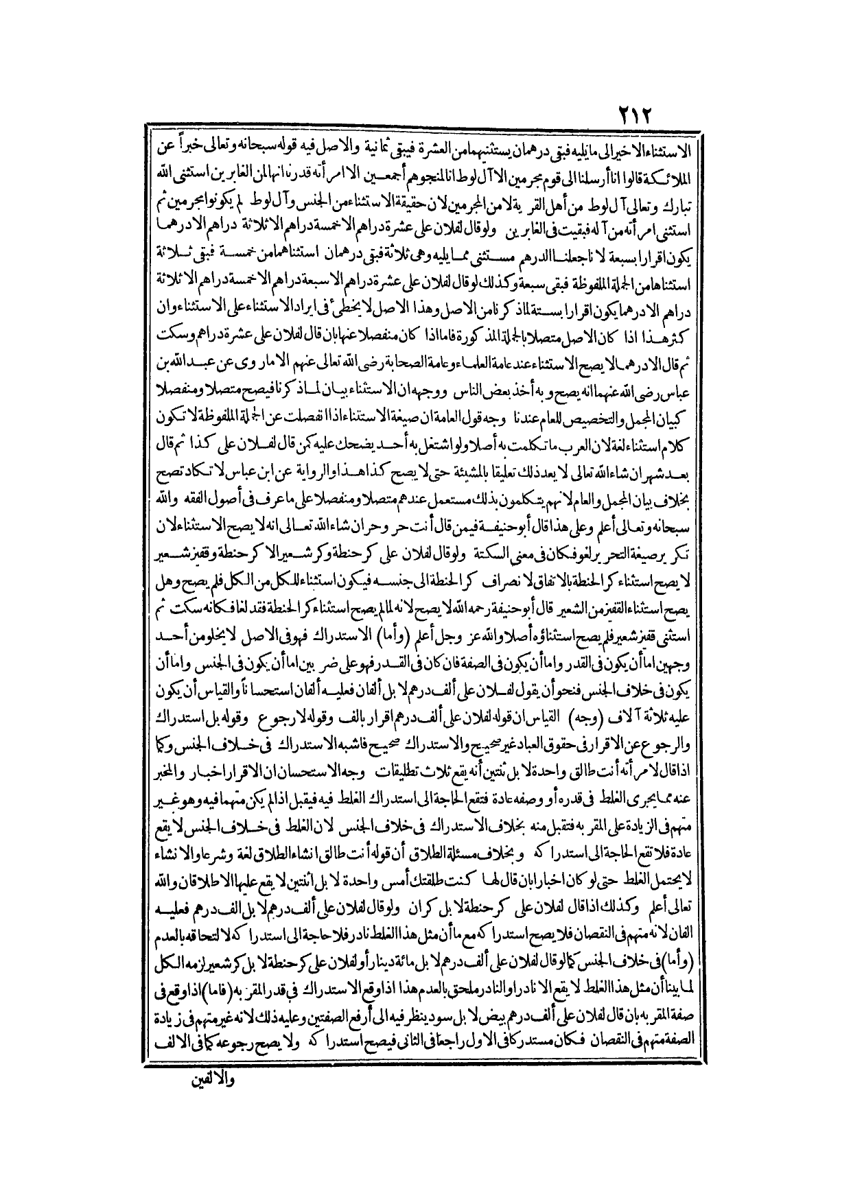 إلَّا مَا رُوِيَ عَنْ أَبِي يُوسُفَ - رَحِمَهُ اللَّهُ - لَا يَصِحُّ وَعَلَيْهِ الْعَشَرَةُ، وَالصَّحِيحُ جَوَابُ ظَاهِرِ الرِّوَايَةِ؛ لِأَنَّ الْمَنْقُولَ عَنْ أَئِمَّةِ اللُّغَةِ - رَحِمَهُمُ اللَّهُ - أَنَّ الِاسْتِثْنَاءَ تَكَلُّمٌ بِالْبَاقِي بَعْدَ الثِّنْيَا، وَهَذَا الْمَعْنَى كَمَا يُوجَدُ فِي اسْتِثْنَاءِ الْقَلِيلِ مِنْ الْكَثِيرِ يُوجَدُ فِي اسْتِثْنَاءِ الْكَثِيرِ مِنْ الْقَلِيلِ إلَّا أَنَّ هَذَا النَّوْعَ مِنْ الِاسْتِثْنَاءِ غَيْرُ مُسْتَحْسَنٍ عِنْدَ أَهْلِ اللُّغَةِ؛ لِأَنَّهُمْ إنَّمَا وَضَعُوا الِاسْتِثْنَاءَ لِحَاجَتِهِمْ إلَى اسْتِدْرَاكِ الْغَلَطِ، وَمِثْلُ هَذَا الْغَلَطِ مِمَّا يَنْدُرُ وُقُوعُهُ غَايَةَ النُّدْرَةِ فَلَا حَاجَةَ إلَى اسْتِدْرَاكِهِ لَكِنْ يُحْتَمَلُ الْوُقُوعُ فِي الْجُمْلَةِ فَيَصِحُّ (وَأَمَّا) اسْتِثْنَاءُ الْكُلِّ مِنْ الْكُلِّ بِأَنْ يَقُولَ: لِفُلَانٍ عَلَيَّ عَشَرَةُ دَرَاهِمَ إلَّا عَشَرَةَ دَرَاهِمَ فَبَاطِلٌ وَعَلَيْهِ عَشَرَةٌ كَامِلَةٌ لِأَنَّ هَذَا لَيْسَ بِاسْتِثْنَاءٍ إذْ هُوَ تَكَلُّمٌ بِالْحَاصِلِ بَعْدَ الثِّنْيَا، وَلَا حَاصِلَ هَهُنَا بَعْدَ الثِّنْيَا فَلَا يَكُونُ اسْتِثْنَاءً بَلْ يَكُونُ إبْطَالًا لِلْكَلَامِ وَرُجُوعًا عَمَّا تَكَلَّمَ بِهِ وَالرُّجُوعُ عَنْ الْإِقْرَارِ فِي حَقِّ الْعِبَادِ لَا يَصِحُّ فَبَطَلَ الرُّجُوعُ وَبَقِيَ الْإِقْرَارُ.