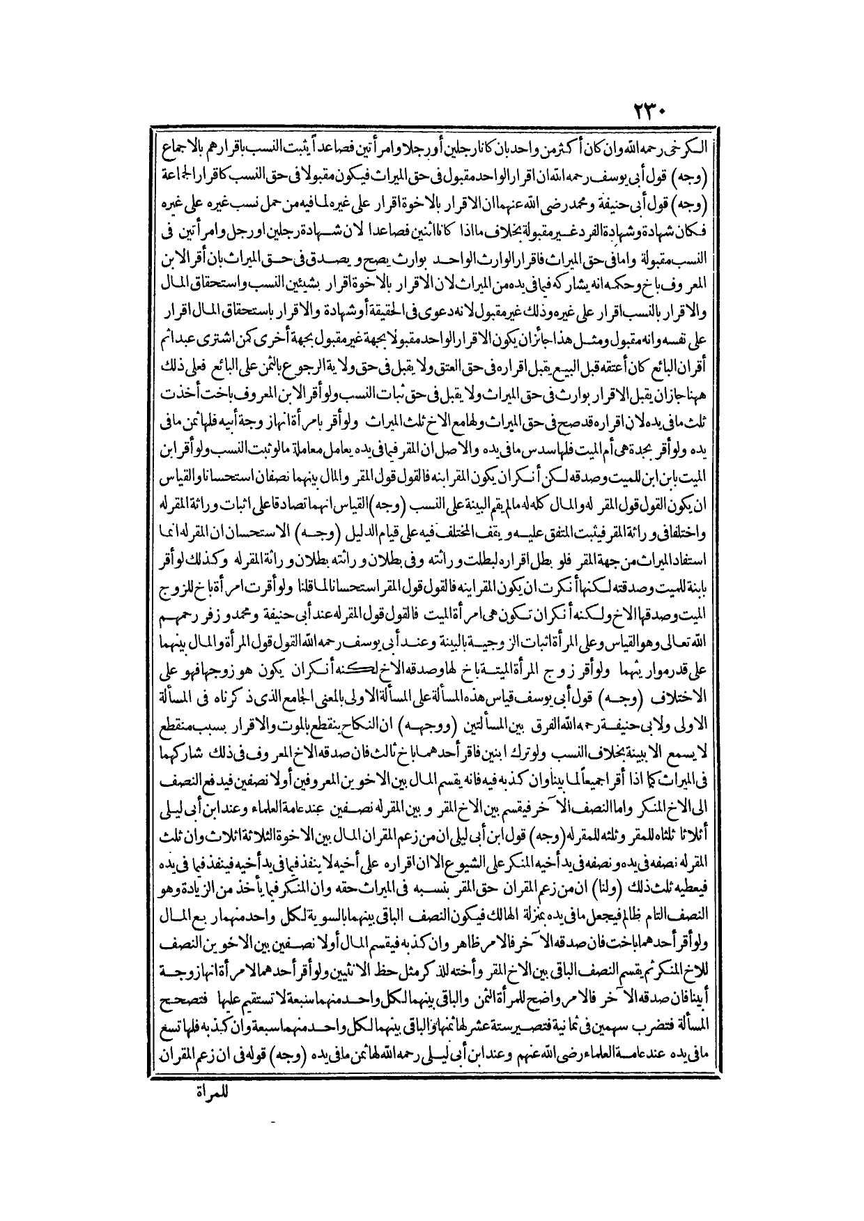 أَبِي حَنِيفَةَ - رَضِيَ اللَّهُ عَنْهُ - (وَأَمَّا) عَلَى قَوْلِهِمَا يَجِبُ أَنْ يَكُونَ إقْرَارُهَا بِاسْتِيفَاءِ الْمَهْرِ مِنْ الزَّوْجِ صَحِيحًا فِي حَقِّ التَّقْدِيمِ عَلَى الْوَرَثَةِ فِي جَمِيعِ مَا أَقَرَّتْ (وَأَصْلُ) الْمَسْأَلَةِ فِي كِتَابِ الطَّلَاقِ فِي الْمَرِيضِ يُطَلِّقُ امْرَأَتَهُ بِسُؤَالِهَا ثُمَّ يُقِرُّ لَهَا بِمَالٍ أَنَّهُ يَصِحُّ إقْرَارُهُ عِنْدَهُمَا لِأَنَّهَا أَجْنَبِيَّةٌ لَا مِيرَاثَ لَهَا مِنْهُ، وَأَبُو حَنِيفَةَ - رَضِيَ اللَّهُ عَنْهُ - يَقُولُ لَهَا الْأَقَلُّ مِنْ نَصِيبِهَا مِنْ الْمِيرَاثِ وَمِمَّا أَقَرَّ لَهَا بِهِ فَهُمَا يَعْتَبِرَانِ ظَاهِرَ كَوْنِهَا أَجْنَبِيَّةً، وَأَبُو حَنِيفَةَ - رَحِمَهُ اللَّهُ - يَقُولُ: يَحْتَمِلُ أَنَّهُمَا تَوَاضَعَا عَلَى ذَلِكَ لِيُقِرَّ لَهَا بِأَكْثَرَ مِنْ نَصِيبِهَا فَكَانَ مُتَّهَمًا فِيمَا زَادَ عَلَى مِيرَاثِهَا فِي حَقِّ سَائِرِ الْوَرَثَةِ فَلَمْ يَصِحَّ فَهَذَا كَذَلِكَ، وَالْعَبْدُ الْمَأْذُونُ فِي حَالَةِ الْمَرَضِ فِي الْإِقْرَارِ بِاسْتِيفَاءِ دَيْنِ الصِّحَّةِ وَالْمَرَضِ كَالْحُرِّ؛ لِأَنَّهُ يَمْلِكُ الْإِقْرَارَ بِاسْتِيفَاءِ الدَّيْنِ وَقَبْضِهِ كَالْحُرِّ، فَكُلُّ مَا صَحَّ مِنْ الْحُرِّ يَصِحُّ مِنْهُ وَمَا لَا فَلَا، وَاَللَّهُ تَعَالَى أَعْلَمُ.