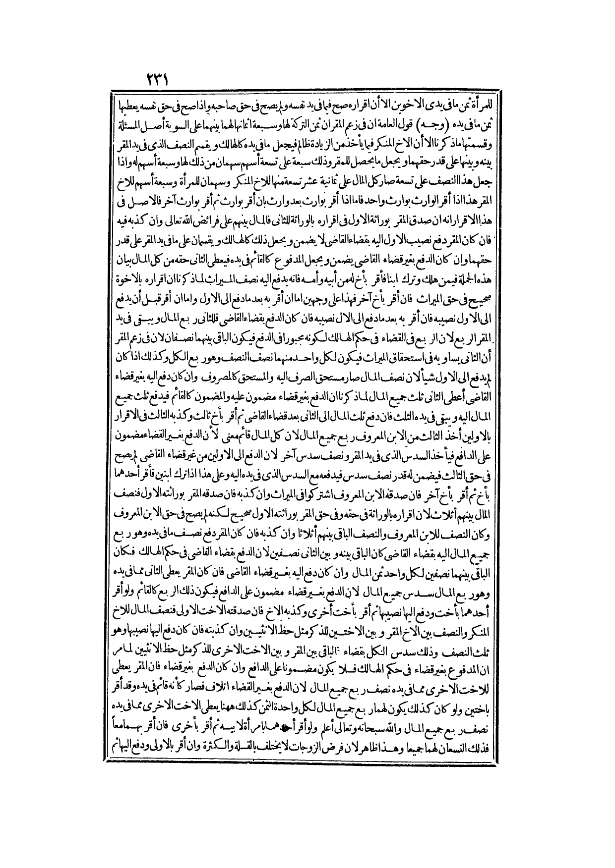 وَأَمَّا الْإِقْرَارُ بِوَارِثٍ فَالْكَلَامُ فِيهِ فِي مَوْضِعَيْنِ: أَحَدُهُمَا فِي حَقِّ ثَبَاتِ النَّسَبِ، وَالثَّانِي فِي حَقِّ الْمِيرَاثِ أَمَّا الْأَوَّلُ فَالْأَمْرُ فِيهِ لَا يَخْلُو مِنْ أَحَدِ وَجْهَيْنِ: إمَّا إنْ كَانَ الْوَارِثُ وَاحِدًا وَإِمَّا إنْ كَانَ أَكْثَرَ مِنْ وَاحِدٍ بِأَنْ مَاتَ رَجُلٌ وَتَرَكَ ابْنًا فَأَقَرَّ بِأَخٍ هَلْ يَثْبُتُ نَسَبُهُ مِنْ الْمَيِّتِ؟ اُخْتُلِفَ فِيهِ.