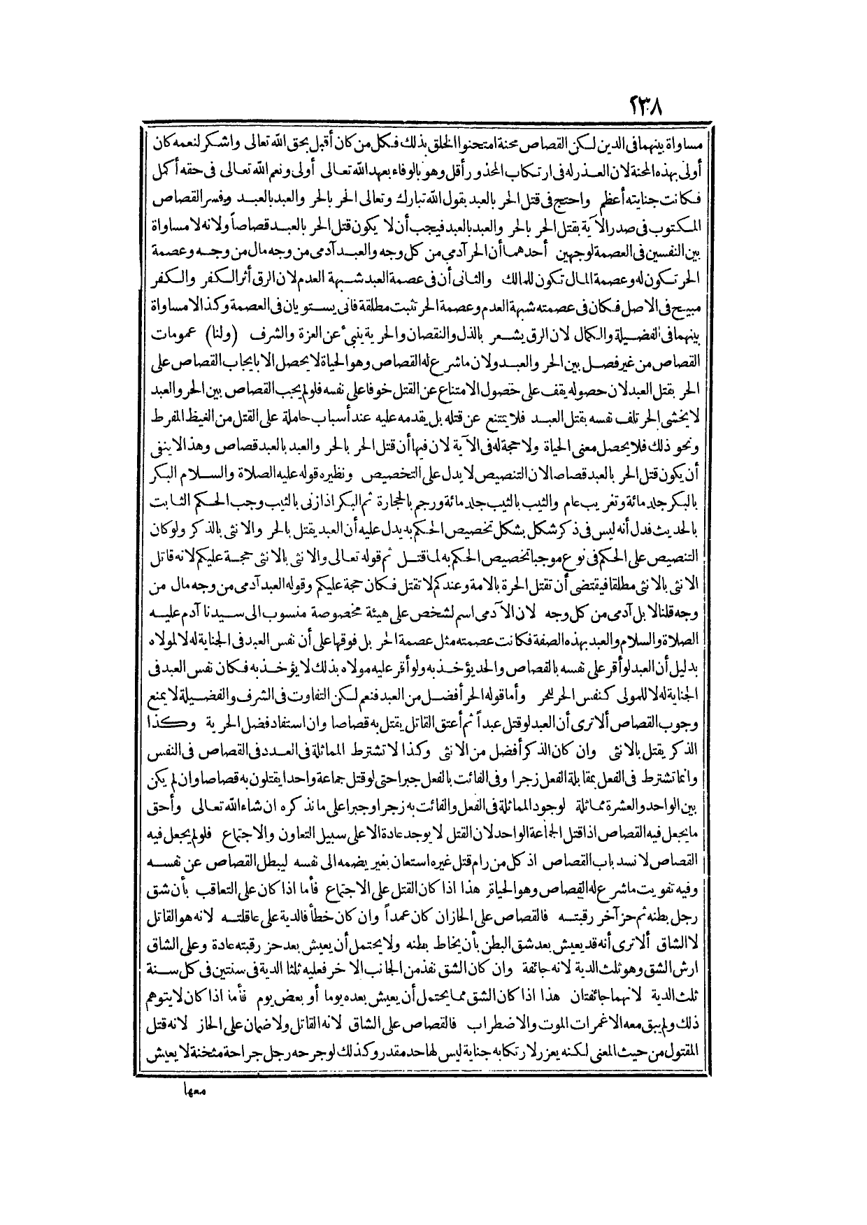 وَلَا يُقْتَلُ الْعَادِلُ بِالْبَاغِي لِعَدَمِ الْعِصْمَةِ بِسَبَبِ الْحَرْبِ، لِأَنَّهُمْ يَقْصِدُونَ أَمْوَالَنَا وَأَنْفُسَنَا وَيَسْتَحِلُّونَهَا، وَقَدْ قَالَ: - عَلَيْهِ الصَّلَاةُ وَالسَّلَامُ - «قَاتِلْ دُونَ نَفْسِك» ، وَقَالَ - عَلَيْهِ الصَّلَاةُ وَالسَّلَامُ - «قَاتِلْ دُونَ مَالِكَ» ، وَلَا يُقْتَلُ الْبَاغِي بِالْعَادِلِ أَيْضًا عِنْدَنَا، وَعِنْدَ الشَّافِعِيِّ - رَحِمَهُ اللَّهُ - يُقْتَلُ، لِأَنَّ الْمَقْتُولَ مَعْصُومٌ مُطْلَقًا.