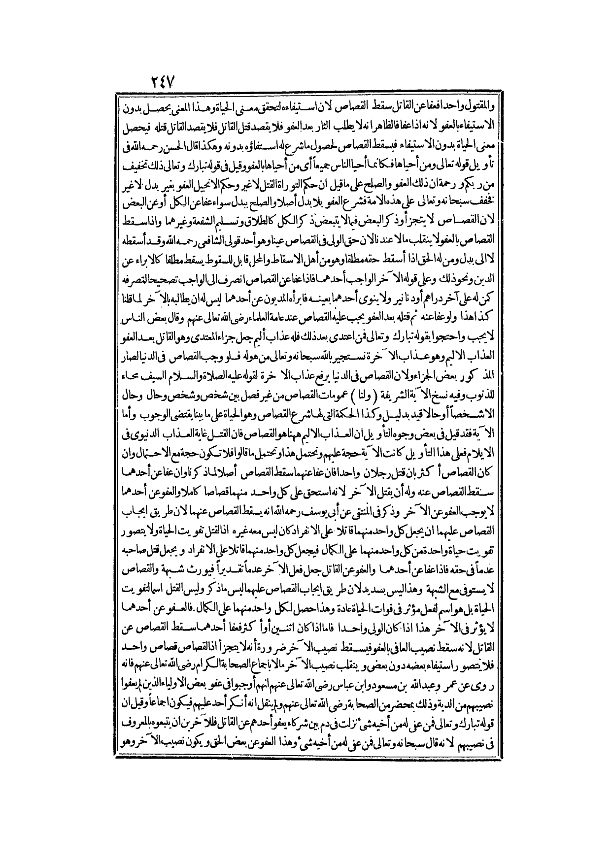 وَقَدْ رُوِيَ أَنَّهُ لَمَا قُتِلَ سَيِّدُنَا عُمَرُ - رَضِيَ اللَّهُ عَنْهُ - خَرَجَ الْهُرْمُزَانُ، وَالْخِنْجَرُ فِي يَدِهِ فَظَنَّ عُبَيْدُ اللَّهِ أَنَّ هَذَا الَّذِي قَتَلَ سَيِّدَنَا عُمَرَ - رَضِيَ اللَّهُ عَنْهُ - فَقَتَلَهُ فَرُفِعَ ذَلِكَ إلَى سَيِّدِنَا عُثْمَانَ - رَضِيَ اللَّهُ عَنْهُ - فَقَالَ سَيِّدُنَا عَلِيٌّ - رَضِيَ اللَّهُ عَنْهُ - لِسَيِّدِنَا عُثْمَانَ اُقْتُلْ عُبَيْدَ اللَّهِ فَامْتَنَعَ سَيِّدُنَا عُثْمَانُ - رَضِيَ اللَّهُ عَنْهُ - وَقَالَ: كَيْفَ أَقْتُلُ رَجُلًا قُتِلَ أَبُوهُ أَمْسِ؟ لَا أَفْعَلُ، وَلَكِنْ هَذَا رَجُلٌ مِنْ أَهْلِ الْأَرْضِ، وَأَنَا وَلِيُّهُ أَعْفُو عَنْهُ، وَأُؤَدِّي دِيَتَهُ وَأَرَادَ بِقَوْلِهِ أَعْفُو عَنْهُ، وَأُؤَدِّي دِيَتَهُ الصُّلْحَ عَلَى الدِّيَةِ وَلِلْإِمَامِ أَنْ يُصَالِحَ عَلَى الدِّيَةِ إلَّا أَنَّهُ لَا يَمْلِكُ الْعَفْوَ؛ لِأَنَّ الْقِصَاصَ حَقُّ الْمُسْلِمِينَ بِدَلِيلِ أَنَّ مِيرَاثَهُ لَهُمْ، وَإِنَّمَا الْإِمَامُ نَائِبٌ عَنْهُمْ فِي الْإِقَامَةِ، وَفِي الْعَفْوِ إسْقَاطُ حَقِّهِمْ أَصْلًا وَرَأْسًا، وَهَذَا لَا يَجُوزُ؛ وَلِهَذَا لَا يَمْلِكُهُ الْأَبُ، وَالْجَدُّ، وَإِنْ كَانَا يَمْلِكَانِ اسْتِيفَاءَ الْقِصَاصِ، وَلَهُ أَنْ يُصَالِحَ عَلَى الدِّيَةِ كَمَا فَعَلَ سَيِّدُنَا عُثْمَانُ - رَضِيَ اللَّهُ عَنْهُ - وَاَللَّهُ تَعَالَى الْمُوَفِّقُ بِالصَّوَابِ.