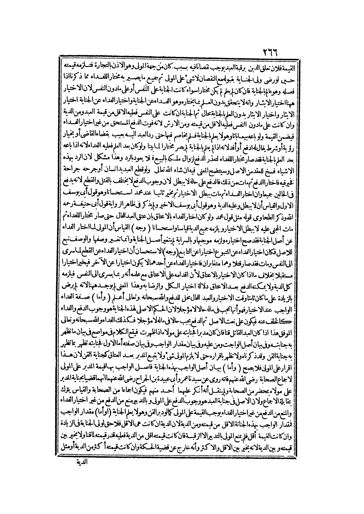 وَقَالَ: إلَّا أَنَّ عِنْدَ مُحَمَّدٍ الدِّيَةُ تَكُونُ فِي عَيْنِ الْعَبْدِ لِوَلِيِّ الْجِنَايَةِ يَبِيعُهُ فِيهَا الْمَوْلَى لِوَلِيِّ الْجِنَايَةِ.