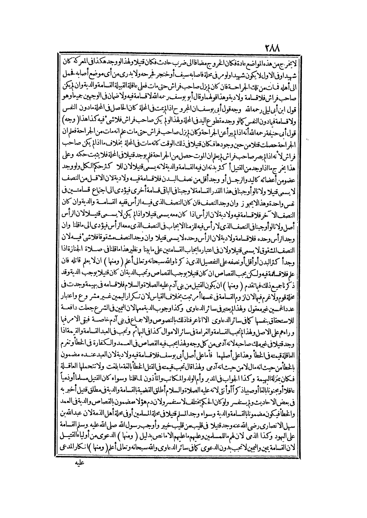 فِي الْقَسَامَةِ هَذَا الَّذِي ذَكَرْنَا حُكْمُ قَتْلِ نَفْسٍ عُلِمَ قَاتِلُهَا، فَأَمَّا حُكْمُ نَفْسٍ لَمْ يُعْلَمْ قَاتِلُهَا - فَوُجُوبُ الْقَسَامَةِ وَالدِّيَةِ عِنْدَ عَامَّةِ الْعُلَمَاءِ - رَحِمَهُمْ اللَّهُ تَعَالَى - وَعِنْدَ مَالِكٍ - رَحِمَهُ اللَّهُ -: وُجُوبُ الْقَسَامَةِ وَالْقِصَاصِ، وَالْكَلَامُ فِي الْقَسَامَةِ يَقَعُ فِي مَوَاضِعَ فِي تَفْسِيرِ الْقَسَامَةِ، وَبَيَانِ مَحَلِّهَا، وَفِي بَيَانِ شَرَائِطِ وُجُوبِ الْقَسَامَةِ وَالدِّيَةِ، وَفِي بَيَانِ سَبَبِ وُجُوبِ الْقَسَامَةِ وَالدِّيَةِ، وَفِي بَيَانِ مَنْ يَدْخُلُ فِي الْقَسَامَةِ وَالدِّيَةِ، وَفِي بَيَانِ مَا يَكُونُ إبْرَاءً عَنْ الْقَسَامَةِ وَالدِّيَةِ أَمَّا تَفْسِيرُ الْقَسَامَةِ، وَبَيَانُ مَحَلِّهَا - فَالْقَسَامَةُ فِي اللُّغَةِ: تُسْتَعْمَلُ بِمَعْنَى الْوَسَامَةِ، وَهُوَ الْحُسْنُ وَالْجَمَالُ، يُقَالُ: فُلَانٌ قَسِيمٌ أَيْ حَسَنٌ جَمِيلٌ، وَفِي صِفَاتِ النَّبِيِّ - عَلَيْهِ الصَّلَاةُ وَالسَّلَامُ - قَسِيمٌ، وَتُسْتَعْمَلُ بِمَعْنَى الْقَسَمِ، وَهُوَ الْيَمِينُ إلَّا أَنَّ فِي عُرْفِ الشَّرْعِ تُسْتَعْمَلُ فِي الْيَمِينِ بِاَللَّهِ - تَبَارَكَ وَتَعَالَى - بِسَبَبٍ مَخْصُوصٍ وَعَدَدٍ مَخْصُوصٍ، وَعَلَى شَخْصٍ مَخْصُوصٍ، وَهُوَ الْمُدَّعَى عَلَيْهِ عَلَى وَجْهٍ مَخْصُوصٍ، وَهُوَ أَنْ يَقُولَ خَمْسُونَ مِنْ أَهْلِ الْمَحَلَّةِ إذَا وُجِدَ قَتِيلٌ فِيهَا: بِاَللَّهِ مَا قَتَلْنَاهُ وَلَا عِلْمنَا لَهُ قَاتِلًا، فَإِذَا حَلَفُوا يَغْرَمُونَ الدِّيَةَ وَهَذَا عِنْدَ أَصْحَابِنَا - رَحِمَهُمُ اللَّهُ - وَقَالَ مَالِكٌ - رَحِمَهُ اللَّهُ -: إنْ كَانَ هُنَاكَ لَوْثٌ يُسْتَحْلَفُ الْأَوْلِيَاءُ خَمْسِينَ يَمِينًا فَإِذَا حَلَفُوا يُقْتَصُّ مِنْ الْمُدَّعَى عَلَيْهِ، وَتَفْسِيرُ اللَّوْثِ عِنْدَهُ أَنْ يَكُونَ هُنَاكَ عَلَامَةُ الْقَتْلِ فِي وَاحِدٍ بِعَيْنِهِ أَوْ يَكُونَ هُنَاكَ عَدَاوَةٌ ظَاهِرَةٌ، وَقَالَ الشَّافِعِيُّ - رَحِمَهُ اللَّهُ -: إنْ كَانَ هُنَاكَ لَوْثٌ أَيْ عَدَاوَةٌ ظَاهِرَةٌ.