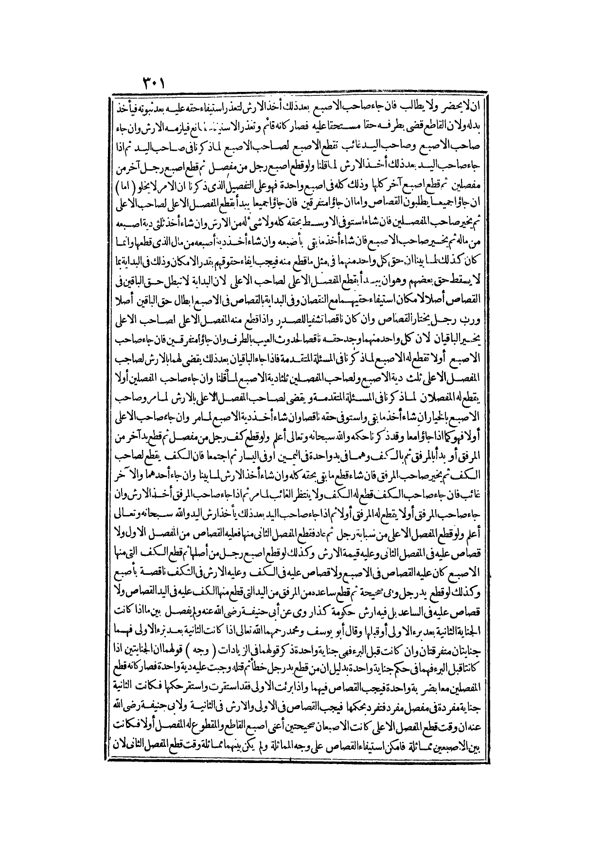 وَكَذَا مَنْفَعَةُ الْيَدَيْنِ أَكْثَرُ مِنْ مَنْفَعَةِ يَدٍ وَاحِدَةٍ عَادَةً (وَأَمَّا) فِي الْفِعْلِ فَلِأَنَّ الْمَوْجُودَ مِنْ كُلِّ وَاحِدٍ مِنْهُمَا قَطْعُ بَعْضِ الْيَدِ كَأَنَّهُ وَضَعَ أَحَدُهُمَا السِّكِّينَ مِنْ جَانِبٍ، وَالْآخَرَ مِنْ جَانِبٍ آخَرَ، وَالْجَزَاءُ قَطْعُ كُلِّ وَاحِدٍ مِنْ كُلِّ وَاحِدٍ مِنْهُمَا، وَقَطْعُ كُلِّ الْيَدِ أَكْثَرُ مِنْ قَطْعِ بَعْضِ الْيَدِ، وَانْعِدَامُ الْمُمَاثَلَةِ مِنْ وَجْهٍ تَكْفِي لِجَرَيَانِ الْقِصَاصِ كَيْفَ وَقَدْ انْعَدَمَتْ مِنْ وُجُوهٍ؟ وَأَمَّا قَوْلُ سَيِّدِنَا عَلِيٍّ - رَضِيَ اللَّهُ عَنْهُ - فَلَا حُجَّةَ لَهُ فِيهِ، لِأَنَّهُ إنَّمَا قَالَ ذَلِكَ عَلَى سَبِيلِ السِّيَاسَةِ بِدَلِيلِ أَنَّهُ أَضَافَ الْقَطْعَ إلَى نَفْسِهِ، وَذَا لَا يَكُونُ إلَّا بِطَرِيقِ السِّيَاسَةِ، وَاَللَّهُ سُبْحَانَهُ وَتَعَالَى أَعْلَمُ.