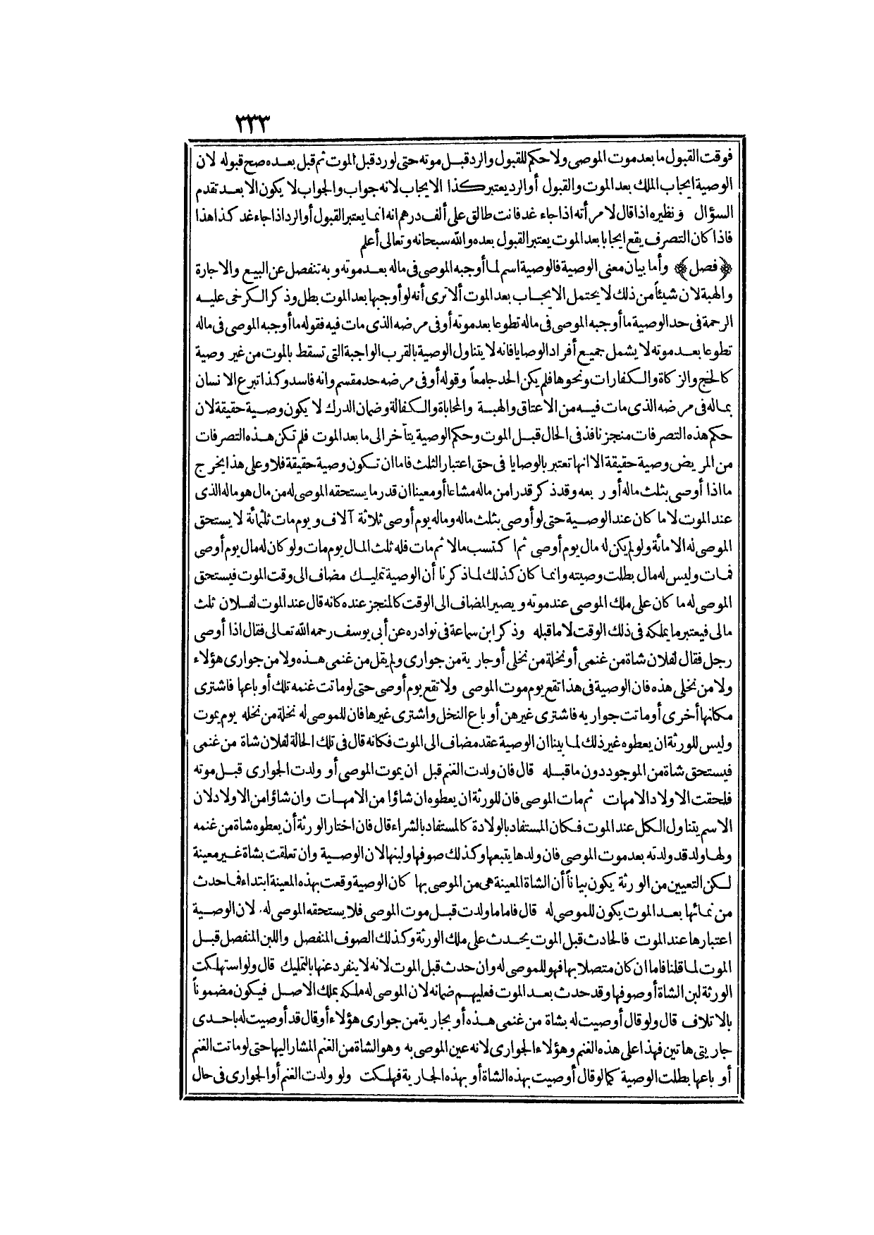 وَأَمَّا رُكْنُ الْوَصِيَّةِ فَقَدْ اُخْتُلِفَ فِيهِ قَالَ أَصْحَابُنَا الثَّلَاثَةُ - رَحِمَهُمُ اللَّهُ -: هُوَ الْإِيجَابُ، وَالْقَبُولُ الْإِيجَابُ مِنْ الْمُوصِي، وَالْقَبُولُ مِنْ الْمُوصَى لَهُ فَمَا لَمْ يُوجَدَا جَمِيعًا لَا يَتِمُّ الرُّكْنُ، وَإِنْ شِئْتَ قُلْتَ: رُكْنُ الْوَصِيَّةِ الْإِيجَابُ مِنْ الْمُوصِي، وَعَدَمُ الرَّدِّ مِنْ الْمُوصَى لَهُ وَهُوَ أَنْ يَقَعَ الْيَأْسُ عَنْ رَدِّهِ، وَهَذَا أَسْهَلُ لِتَخْرِيجِ الْمَسَائِلِ عَلَى مَا نَذْكُرُ.