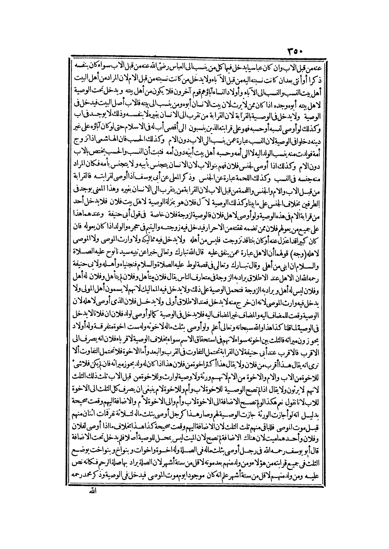وَلَوْ أَوْصَى لِذَوِي قَرَابَتِهِ أَوْ قَرَابَاتِهِ، أَوْ لِأَنْسَابِهِ أَوْ لِأَرْحَامِهِ، أَوْ لِذَوِي أَرْحَامِهِ هَذِهِ الْأَلْفَاظُ الْخَمْسَةُ سَوَاءٌ، فَعِنْدَ أَبِي حَنِيفَةَ الْوَصِيَّةُ بِهَذِهِ الْأَلْفَاظِ لِلْأَقْرَبِ، فَالْأَقْرَبِ فَالْحَاصِلُ أَنَّ عِنْدَ أَبِي حَنِيفَةَ - عَلَيْهِ الرَّحْمَةُ - يُعْتَبَرُ فِي هَذِهِ الْوَصِيَّةِ خَمْسَةُ أَشْيَاءَ الرَّحِمُ الْمَحْرَمُ وَالْأَقْرَبُ فَالْأَقْرَبُ وَجَمْعُ الْوَصِيَّةِ وَهُوَ اثْنَانِ فَصَاعِدًا، وَأَنْ يَكُونَ سِوَى الْوَالِدَيْنِ وَالْمَوْلُودِينَ، وَأَنْ يَكُونَ مِمَّنْ لَا يَرِثُ، وَعِنْدَهُمَا يَدْخُلُ فِي هَذِهِ الْوَصِيَّةِ ذُو الرَّحِمِ الْمَحْرَمِ وَالْقَرِيبُ وَالْبَعِيدُ إلَى أَقْصَى أَبٍ لَهُ فِي الْإِسْلَامِ حَتَّى لَوْ أَوْصَى لِلْعَلَوِيَّةِ وَالْعَبَّاسِيَّةِ يُصْرَفُ الثُّلُثُ إلَى مَنْ اتَّصَلَ بِسَيِّدِنَا عَلِيٍّ، وَبِسَيِّدِنَا الْعَبَّاسِ - رَضِيَ اللَّهُ عَنْهُمَا - لَا إلَى مَنْ فَوْقَهُمَا مِنْ الْآبَاءِ، وَلَا خِلَافَ فِي اعْتِبَارِ الْأَوْصَافِ الثَّلَاثَةِ، وَهِيَ: اعْتِبَارُ جَمْعِ الْوَصِيَّةِ وَأَنْ لَا يَكُونَ وَالِدًا وَلَا وَلَدًا وَأَنْ يَكُونَ مِمَّنْ لَا يَرِثُ (أَمَّا) الْأَوَّلُ؛ فَلِأَنَّ لَفْظَ ذَوِي: لَفْظُ جَمْعٍ، وَأَقَلُّ الْجَمْعِ فِي بَابِ الْوَصِيَّةِ اثْنَانِ؛ لِأَنَّ الْوَصِيَّةَ أُخْتُ الْمِيرَاثِ، وَفِي بَابِ الْمِيرَاثِ كَذَلِكَ، فَإِنَّ الثِّنْتَيْنِ مِنْ الْبَنَاتِ، وَالْأَخَوَاتِ أُلْحِقَتَا بِالثَّلَاثِ، فَصَاعِدًا فِي اسْتِحْقَاقِ الثُّلُثَيْنِ، وَحَجْبُ الْأُمِّ مِنْ الثُّلُثِ إلَى السُّدُسِ عَلَى مَا مَرَّ حَتَّى لَوْ أَوْصَى لِذَوِي قَرَابَتِهِ اسْتَحَقَّ الْوَاحِدُ فَصَاعِدًا كُلَّ الْوَصِيَّةِ؛ لِأَنَّ ذِي لَيْسَ بِلَفْظِ جَمْعٍ.