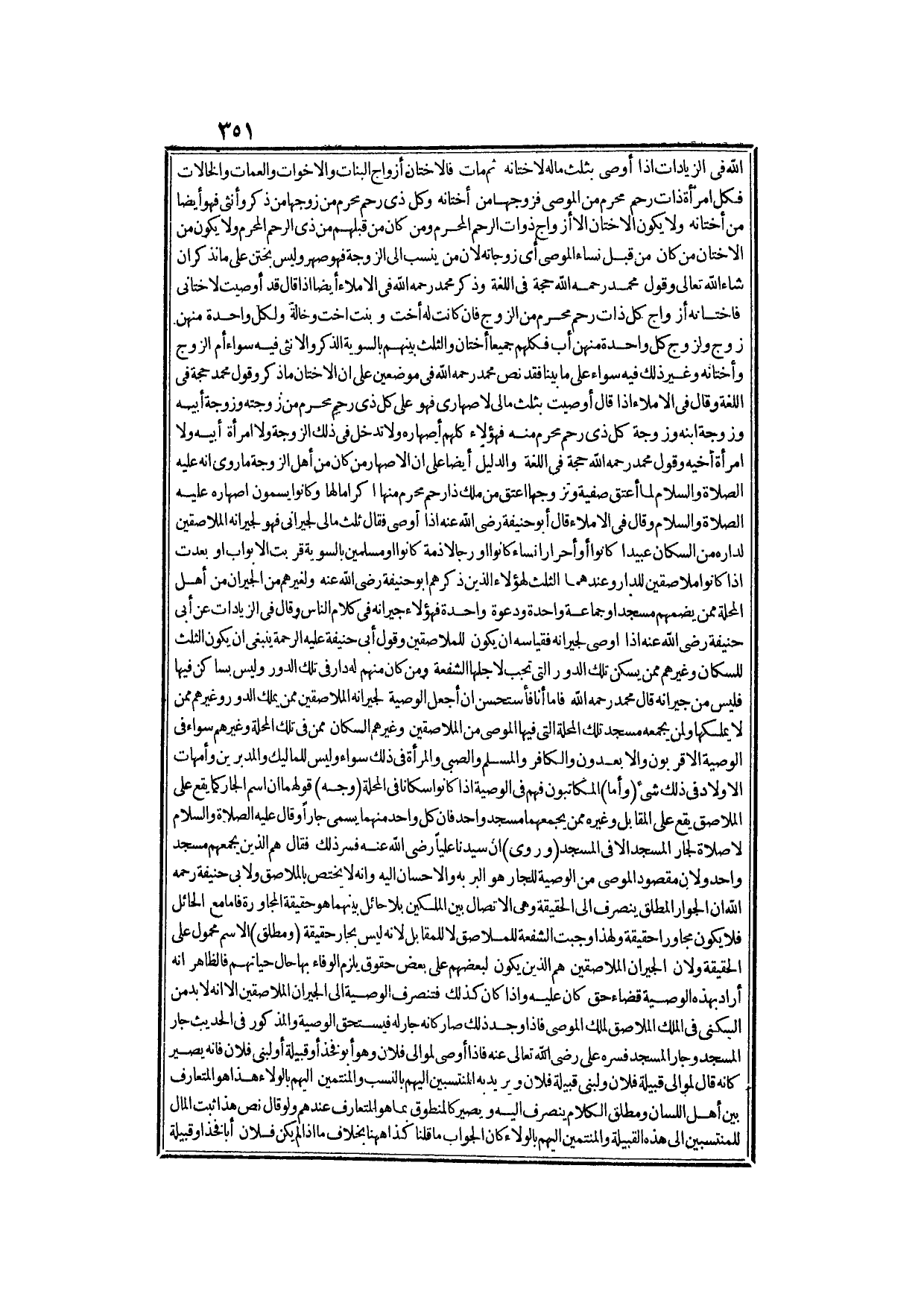 وَلَوْ كَانَ لَهُ عَمٌّ وَاحِدٌ وَخَالَانِ، فَلِلْعَمِّ نِصْفُ الثُّلُثِ، وَلِلْخَالَيْنِ النِّصْفُ الْآخَرُ؛ لِأَنَّ الْوَصِيَّةَ حَصَلَتْ بِاسْمِ الْجَمْعِ، وَأَقَلُّ مَنْ يَدْخُلُ تَحْتَ اسْمِ الْجَمْعِ فِي الْوَصِيَّةِ اثْنَانِ، فَلَا يَسْتَحِقُّ الْعَمُّ الْوَاحِدُ أَكْثَرَ مِنْ نِصْفِ الْوَصِيَّةِ؛ لِأَنَّ أَقَلَّ مَنْ يَنْضَمُّ إلَيْهِ مِثْلُهُ، وَإِذَا اسْتَحَقَّ هُوَ النِّصْفَ بَقِيَ النِّصْفُ الْآخَرُ لَا مُسْتَحِقَّ لَهُ أَقْرَبَ مِنْ الْخَالَيْنِ، فَكَانَ لَهُمَا، وَعِنْدَهُمَا يُقَسَّمُ الثُّلُثُ بَيْنَهُمْ أَثْلَاثًا لِاسْتِوَاءِ الْكُلِّ فِي الِاسْتِحْقَاقِ، فَإِنْ كَانَ لَهُ عَمٌّ وَاحِدٌ، وَلَمْ يَكُنْ لَهُ غَيْرُهُ مِنْ ذَوِي الرَّحِمِ الْمَحْرَمِ، فَنِصْفُ الثُّلُثِ لِعَمِّهِ، وَالنِّصْفُ يُرَدُّ عَلَى وَرَثَةِ الْمُوصِي عِنْدَهُ؛ لِأَنَّ الْعَمَّ الْوَاحِدَ لَا يَسْتَحِقُّ أَكْثَرَ مِنْ النِّصْفِ، فَبَقِيَ النِّصْفُ الْآخَرُ لَا مُسْتَحِقَّ لَهُ، فَتَبْطُلُ فِيهِ الْوَصِيَّةُ، وَعِنْدَهُمَا يُصْرَفُ النِّصْفُ الْآخَرُ إلَى ذِي الرَّحِمِ الَّذِي لَيْسَ بِمَحْرَمٍ.