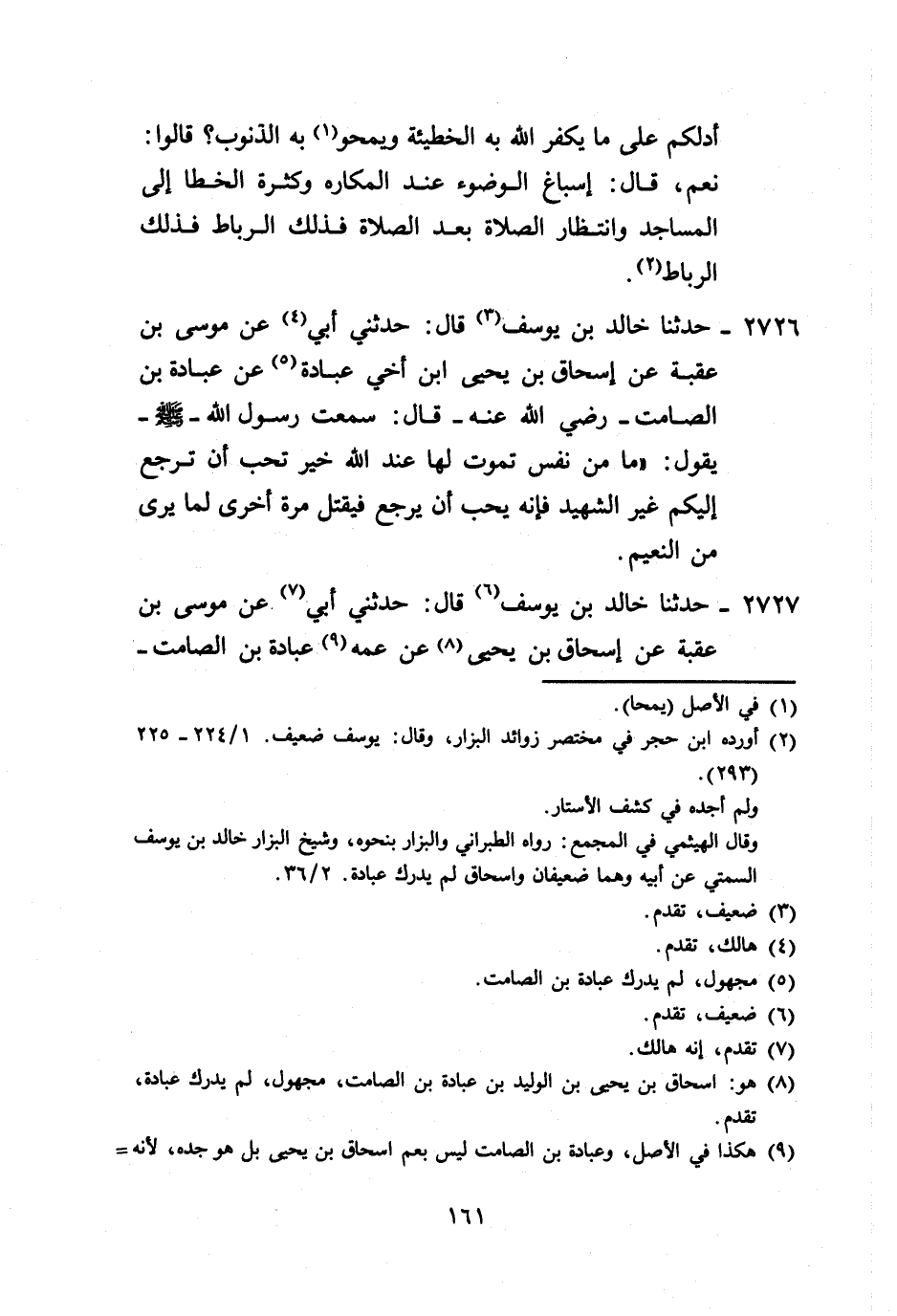 2726 - حَدَّثَنَا خَالِدُ بْنُ يُوسُفَ، قَالَ: حَدَّثَنِي أَبِي، عَنْ مُوسَى بْنِ عُقْبَةَ، عَنْ إِسْحَاقَ بْنِ يَحْيَى ابْنِ أَخِي عُبَادَةَ، عَنْ عُبَادَةَ بْنِ الصَّامِتِ رَضِيَ اللَّهُ عَنْهُ قَالَ: سَمِعْتُ رَسُولَ اللَّهِ صَلَّى اللهُ عَلَيْهِ وَسَلَّمَ يَقُولُ: «§مَا مِنْ نَفْسٍ تَمُوتُ لَهَا عِنْدَ اللَّهِ خَيْرٌ تُحِبُّ أَنْ تَرْجِعَ إِلَيْكُمْ غَيْرُ الشَّهِيدِ فَإِنَّهُ يُحِبُّ أَنْ يَرْجِعَ فَيُقْتَلَ مَرَّةً أُخْرَى؛ لِمَا يَرَى مِنَ النَّعِيمِ»