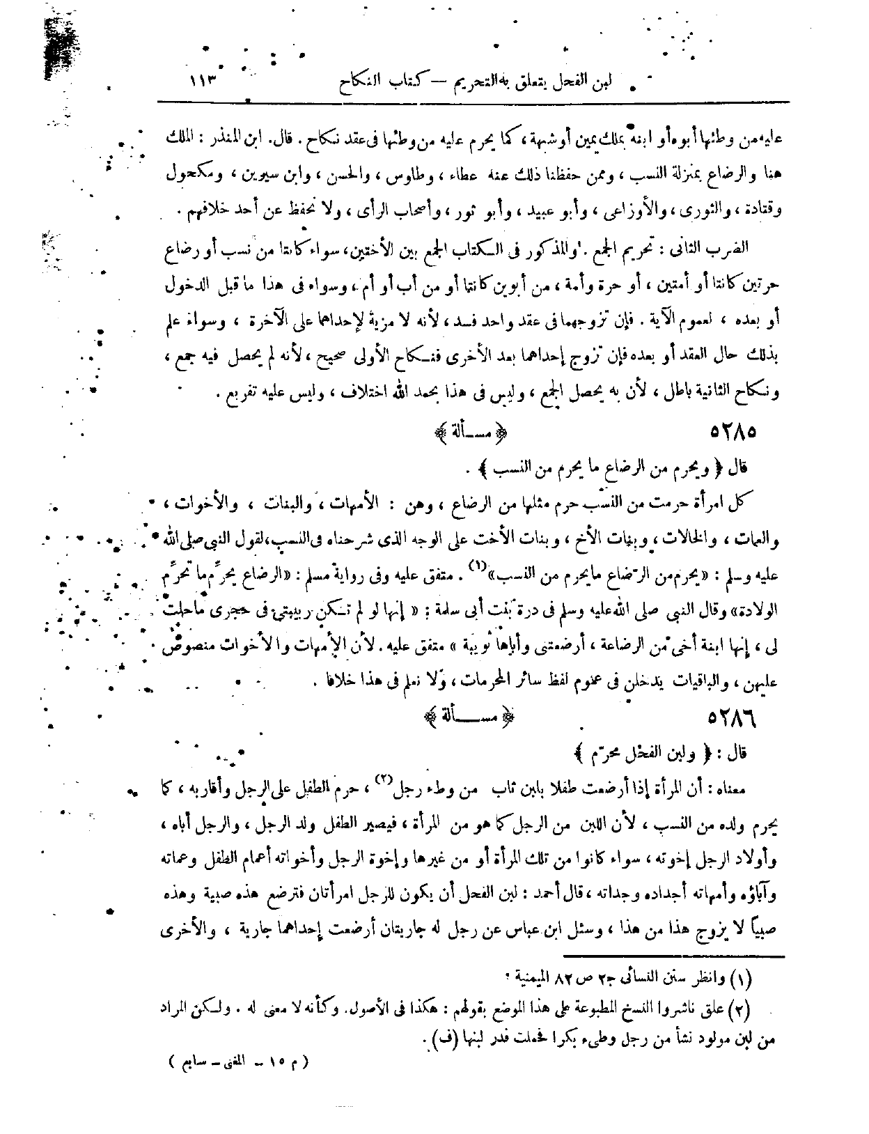 (٥٣٤٩) مَسْأَلَةٌ: (وَيَحْرُمُ مِنْ الرَّضَاعِ مَا يَحْرُمُ مِنْ النَّسَبِ) كُلُّ امْرَأَةٍ حَرُمَتْ مِنْ النَّسَبِ حَرُمَ مِثْلُهَا مِنْ الرَّضَاعِ، وَهُنَّ الْأُمَّهَاتُ، وَالْبَنَاتُ، وَالْأَخَوَاتُ، وَالْعَمَّاتُ، وَالْخَالَاتُ، وَبَنَاتُ الْأَخِ، وَبَنَاتُ الْأُخْتِ عَلَى الْوَجْهِ الَّذِي شَرَحْنَاهُ فِي النَّسَبِ لِقَوْلِ النَّبِيِّ - صَلَّى اللَّهُ عَلَيْهِ وَسَلَّمَ - «يَحْرُمُ مِنْ الرَّضَاعِ مَا يَحْرُمُ مِنْ النَّسَبِ» مُتَّفَقٌ عَلَيْهِ وَفِي رِوَايَةِ مُسْلِمٍ: «الرَّضَاعُ يُحَرِّمُ مَا تُحَرِّمُ الْوِلَادَةُ» «وَقَالَ النَّبِيُّ - صَلَّى اللَّهُ عَلَيْهِ وَسَلَّمَ - فِي دُرَّةَ بِنْتِ أَبِي سَلَمَةَ: إنَّهَا لَوْ لَمْ تَكُنْ رَبِيبَتِي فِي حِجْرِي، مَا حَلَّتْ لِي، إنَّهَا ابْنَةُ أَخِي مِنْ الرَّضَاعَةِ، أَرْضَعَتْنِي وَأَبَاهَا ثُوَيْبَةُ» مُتَّفَقٌ عَلَيْهِ