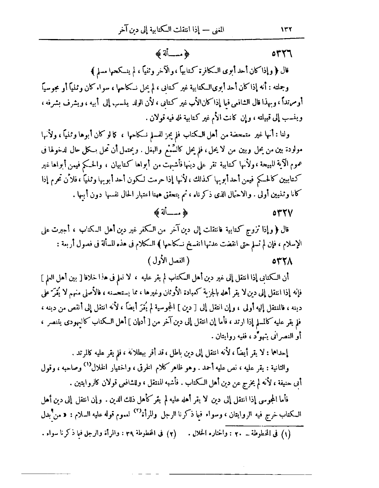 (٥٣٩١) مَسْأَلَةٌ؛ قَالَ: (وَإِذَا تَزَوَّجَ كِتَابِيَّةً، فَانْتَقَلَتْ إلَى دِينٍ آخَرَ مِنْ الْكُفْرِ غَيْرِ دِينِ أَهْلِ الْكِتَابِ، أُجْبِرَتْ عَلَى الْإِسْلَامِ، فَإِنْ لَمْ تُسْلِمْ حَتَّى انْقَضَتْ عِدَّتُهَا، انْفَسَخَ نِكَاحُهَا) الْكَلَامُ فِي هَذِهِ الْمَسْأَلَةِ فِي فُصُولٍ أَرْبَعَةٍ: (٥٣٩٢) الْأَوَّلُ: أَنَّ الْكِتَابِيَّ إذَا انْتَقَلَ إلَى غَيْرِ دِينِ أَهْلِ الْكِتَابِ، لَمْ يُقَرَّ عَلَيْهِ. لَا نَعْلَمُ فِي هَذَا خِلَافًا، فَإِنَّهُ إذَا انْتَقَلَ إلَى دِينٍ لَا يُقَرُّ أَهْلُهُ بِالْجِزْيَةِ، كَعِبَادَةِ الْأَوْثَانِ وَغَيْرِهَا، مِمَّا يَسْتَحْسِنُهُ، فَالْأَصْلِيُّ مِنْهُمْ لَا يُقَرُّ عَلَى دِينِهِ، فَالْمُنْتَقِلُ إلَيْهِ أَوْلَى.