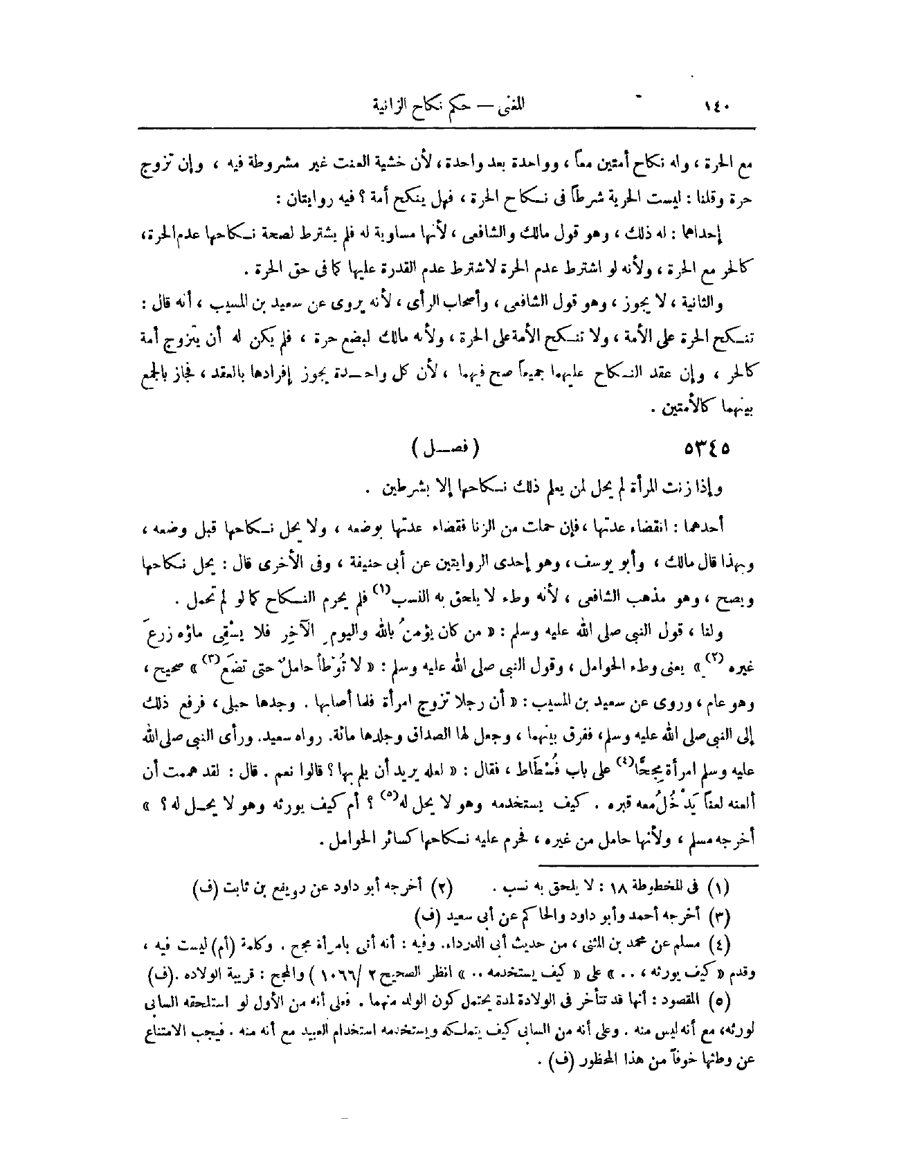 (٥٤٠٩) فَصْلٌ: وَإِذَا زَنَتْ الْمَرْأَةُ، لَمْ يَحِلَّ لِمَنْ يَعْلَمُ ذَلِكَ نِكَاحَهَا إلَّا بِشَرْطَيْنِ؛ أَحَدُهُمَا، انْقِضَاءُ عِدَّتِهَا، فَإِنْ حَمَلَتْ مِنْ الزِّنَى فَقَضَاءُ عِدَّتِهَا بِوَضْعِهِ، وَلَا يَحِلُّ نِكَاحُهَا قَبْلَ وَضْعِهِ. وَبِهَذَا قَالَ مَالِكٌ وَأَبُو يُوسُفَ. وَهُوَ إحْدَى الرِّوَايَتَيْنِ عَنْ أَبِي حَنِيفَةَ. وَفِي الْأُخْرَى قَالَ: يَحِلُّ نِكَاحُهَا وَيَصِحُّ. وَهُوَ مَذْهَبُ الشَّافِعِيِّ؛ لِأَنَّهُ وَطْءٌ لَا يَلْحَقُ بِهِ النَّسَبُ، فَلَمْ يُحَرِّمْ النِّكَاحَ، كَمَا لَوْ لَمْ تَحْمِلْ.