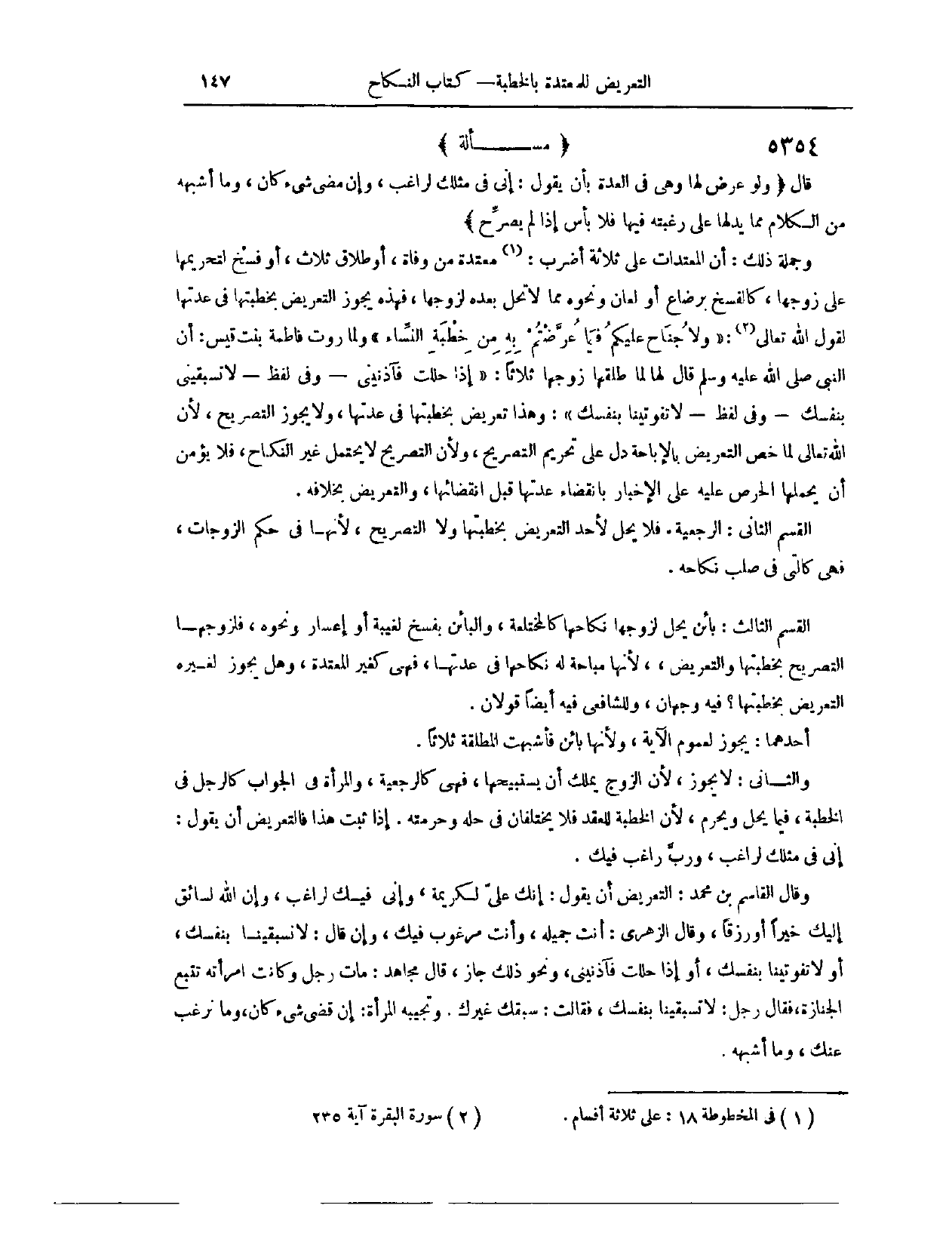 [مَسْأَلَةٌ التَّعْرِيضُ بِالْخُطْبَةِ فِي الْعِدَّة]