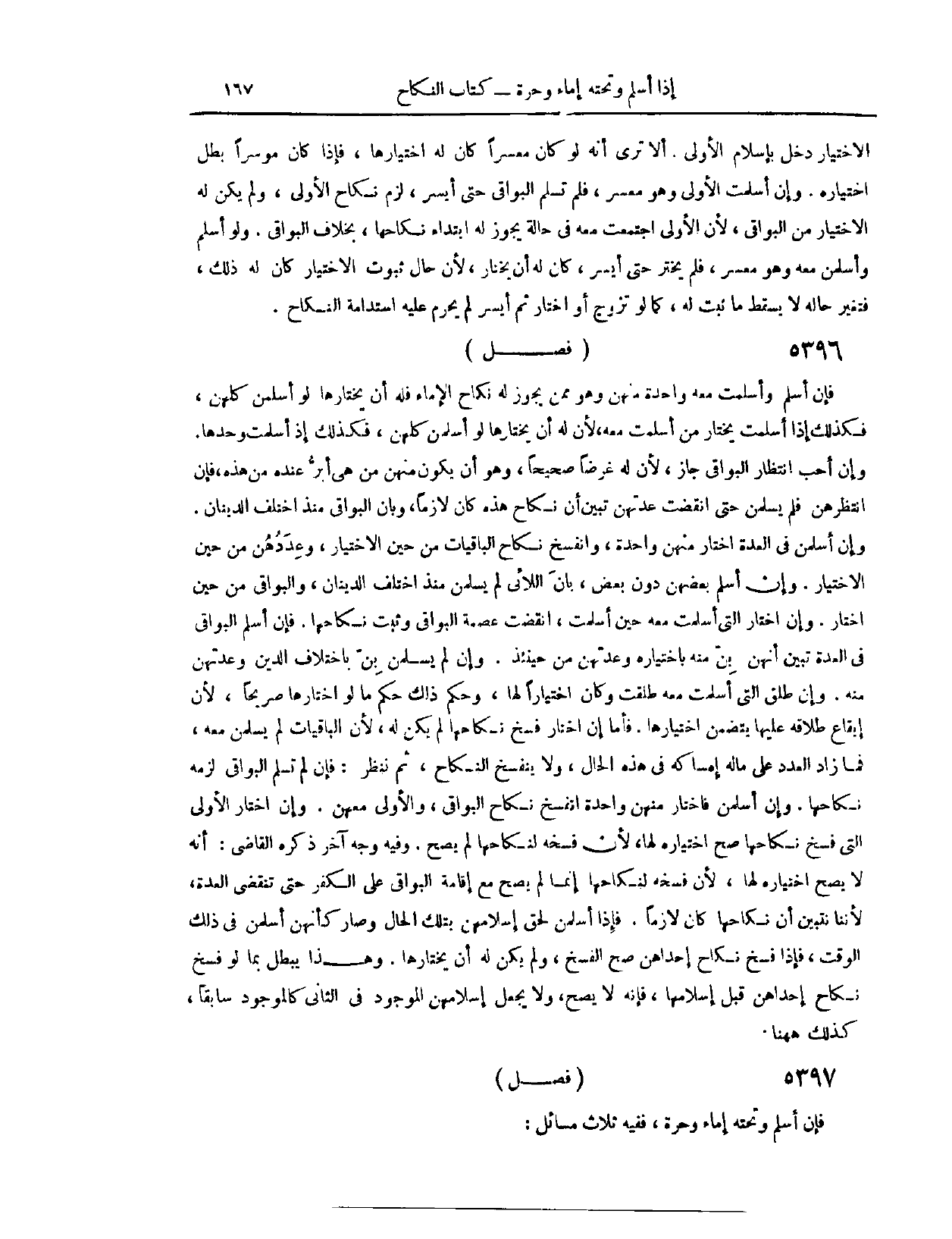 (٥٤٦٦) فَصْلٌ: فَإِنْ أَسْلَمَ وَتَحْتَهُ إمَاءٌ وَحُرَّةٌ، فَفِيهِ ثَلَاثُ مَسَائِلَ؛