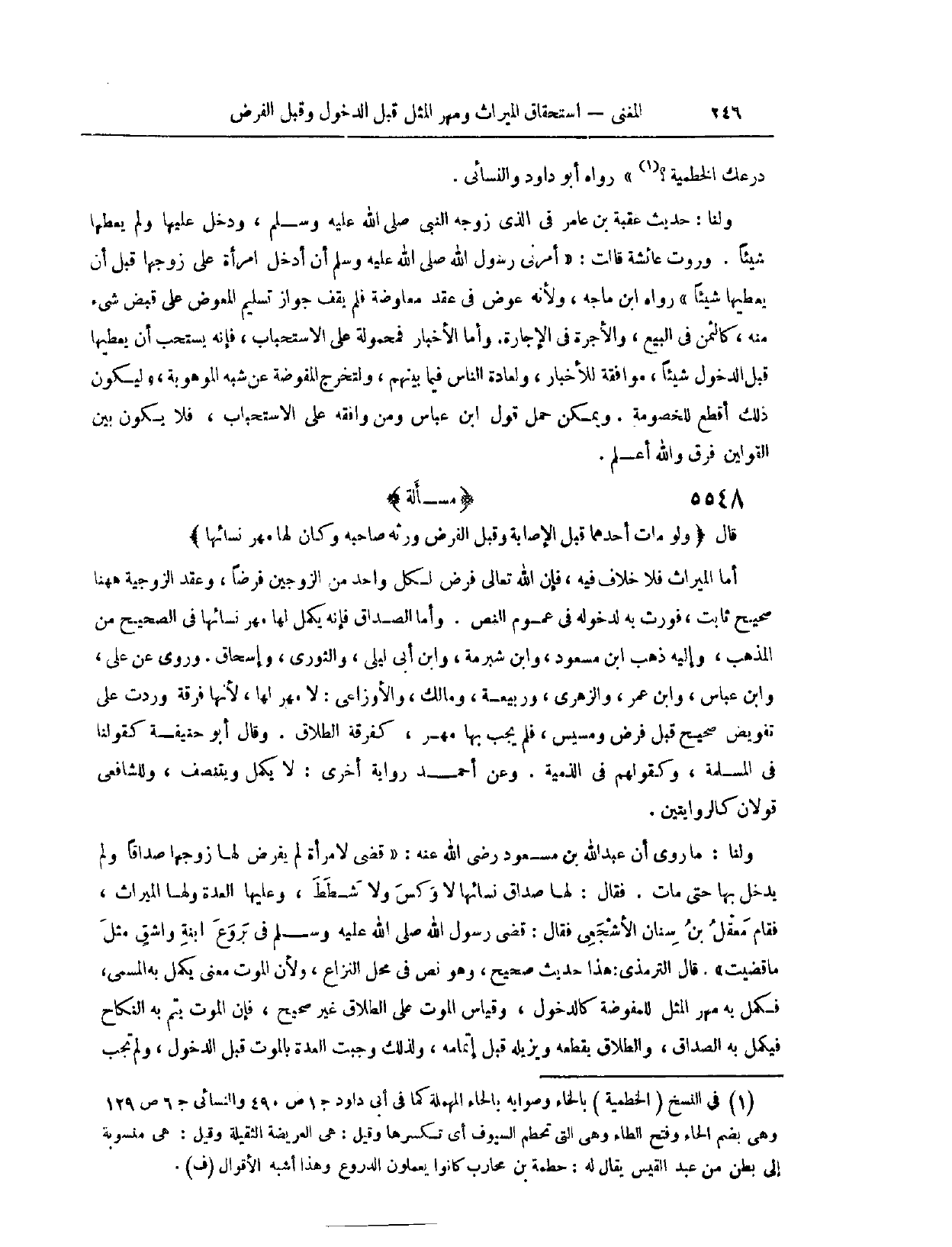دِرْعُك الْحَطْمِيَّةُ؟ .» رَوَاهُ أَبُو دَاوُد، وَالنَّسَائِيُّ. وَلَنَا حَدِيثُ عُقْبَةَ بْنِ عَامِرٍ، فِي الَّذِي زَوَّجَهُ النَّبِيُّ - صَلَّى اللَّهُ عَلَيْهِ وَسَلَّمَ - وَدَخَلَ بِهَا وَلَمْ يُعْطِهَا شَيْئًا.