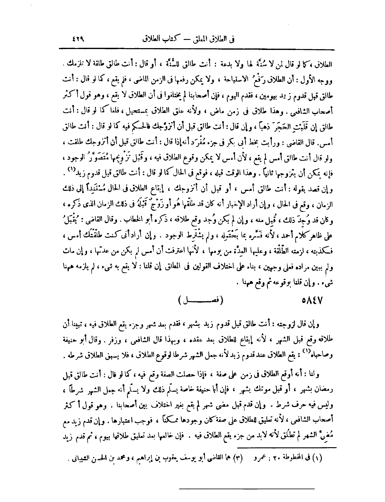 (٥٩٢٥) فَصْلٌ: وَإِنْ قَالَ لِزَوْجَتِهِ: أَنْتِ طَالِقٌ قَبْلَ قُدُومِ زَيْدٍ بِشَهْرٍ. فَقَدِمَ بَعْدَ شَهْرٍ وَجُزْءٍ يَقَعُ الطَّلَاقُ فِيهِ، تَبَيَّنَّا أَنَّ طَلَاقَهُ وَقَعَ قَبْلَ الشَّهْرِ؛ لِأَنَّهُ إيقَاعٌ لِلطَّلَاقِ بَعْدَ عَقْدِهِ. وَبِهَذَا قَالَ الشَّافِعِيُّ، وَزُفَرُ. وَقَالَ أَبُو حَنِيفَةَ وَصَاحِبَاهُ: يَقَعُ الطَّلَاقُ عِنْدَ قُدُومِ زَيْدٍ؛ لِأَنَّهُ جَعَلَ الشَّهْرَ شَرْطًا لِوُقُوعِ الطَّلَاقِ، فَلَا يَسْبِقُ الطَّلَاقُ شَرْطَهُ. وَلَنَا، أَنَّهُ أَوْقَعَ الطَّلَاقَ فِي زَمَنٍ عَلَى صِفَةٍ، فَإِذَا حَصَلَتْ الصِّفَةُ وَقَعَ فِيهِ، كَمَا لَوْ قَالَ: أَنْتِ طَالِقٌ قَبْلَ رَمَضَانَ بِشَهْرٍ، أَوْ قَبْلَ مَوْتِكَ بِشَهْرٍ. فَإِنَّ أَبَا حَنِيفَةَ خَاصَّةً يُسَلِّمُ ذَلِكَ، وَلَا يُسَلِّمُ أَنَّهُ جَعَلَ الشَّهْرَ شَرْطًا، وَلَيْسَ فِيهِ حَرْفُ شَرْطٍ. وَإِنْ قَدِمَ قَبْلَ مُضِيِّ شَهْرٍ، لَمْ يَقَعْ، بِغَيْرِ اخْتِلَافٍ بَيْنَ أَصْحَابِنَا.