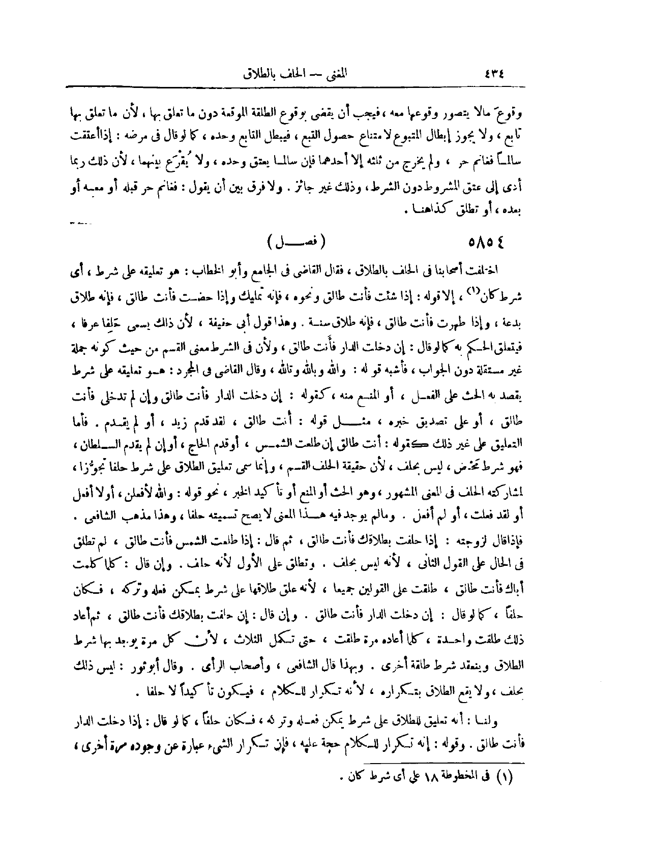 (٥٩٣٢) فَصْلٌ: اخْتَلَفَ أَصْحَابُنَا فِي الْحَلِفِ بِالطَّلَاقِ، فَقَالَ الْقَاضِي فِي " الْجَامِعِ "، وَأَبُو الْخَطَّابِ: هُوَ تَعْلِيقُهُ عَلَى شَرْطٍ، أَيِّ شَرْطٍ كَانَ، إلَّا قَوْلَهُ: إذَا شِئْت فَأَنْتِ طَالِقٌ. وَنَحْوَهُ، فَإِنَّهُ تَمْلِيكٌ. وَإِذَا حِضْت فَأَنْتِ طَالِقٌ. فَإِنَّهُ طَلَاقُ بِدْعَةٍ. وَإِذَا طَهُرْت فَأَنْتِ طَالِقٌ. فَإِنَّهُ طَلَاقُ سُنَّةٍ. وَهَذَا قَوْلُ أَبِي حَنِيفَةَ؛ لِأَنَّ ذَلِكَ يُسَمَّى حَلِفًا عُرْفًا، فَيَتَعَلَّقُ الْحُكْمُ بِهِ، كَمَا لَوْ قَالَ: إنْ دَخَلْت الدَّارَ فَأَنْتِ طَالِقٌ. وَلِأَنَّ فِي الشَّرْطِ مَعْنَى الْقَسَمِ، مِنْ حَيْثُ كَوْنُهُ جُمْلَةً غَيْرَ مُسْتَقِلَّةٍ دُونَ الْجَوَابِ، فَأَشْبَهَ قَوْلَهُ: وَاَللَّهِ، وَبِاَللَّهِ، وَتَاللَّهِ.
