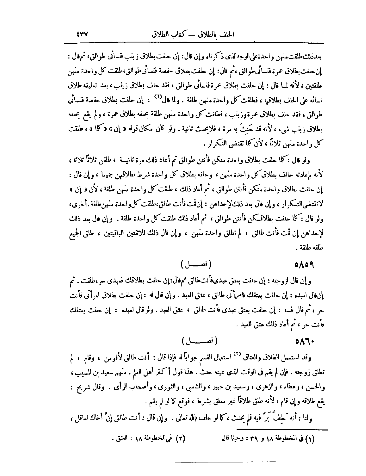 (٥٩٣٨) فَصْلٌ: وَقَدْ اُسْتُعْمِلَ الطَّلَاقُ وَالْعَتَاقُ اسْتِعْمَالَ الْقَسَمِ، جَوَابًا لَهُ، فَإِذَا قَالَ: أَنْتِ طَالِقٌ لَأَقُومَنَّ. وَقَامَ، لَمْ تَطْلُقْ زَوْجَتُهُ، فَإِنْ لَمْ يَقُمْ فِي الْوَقْتِ الَّذِي عَيَّنَهُ حَنِثَ. هَذَا قَوْلُ أَكْثَرِ أَهْلِ الْعِلْمِ؛ مِنْهُمْ سَعِيدُ بْنُ الْمُسَيِّبِ، وَالْحَسَنُ، وَعَطَاءٌ، وَالزُّهْرِيُّ، وَسَعِيدُ بْنُ جُبَيْرٍ، وَالشَّعْبِيُّ، وَالثَّوْرِيُّ، وَأَصْحَابُ الرَّأْيِ. وَقَالَ شُرَيْحٌ: يَقَعُ طَلَاقُهُ وَإِنْ قَامَ؛ لِأَنَّهُ طَلَّقَ طَلَاقًا غَيْرَ مُعَلَّقٍ بِشَرْطٍ، فَوَقَعَ، كَمَا لَوْ لَمْ يَقُمْ. وَلَنَا، أَنَّهُ حَلِفٌ بَرَّ فِيهِ، فَلَمْ يَحْنَثْ، كَمَا لَوْ حَلَفَ بِاَللَّهِ تَعَالَى. وَإِنْ قَالَ: أَنْتِ طَالِقٌ إنَّ أَخَاك لَعَاقِلٌ.