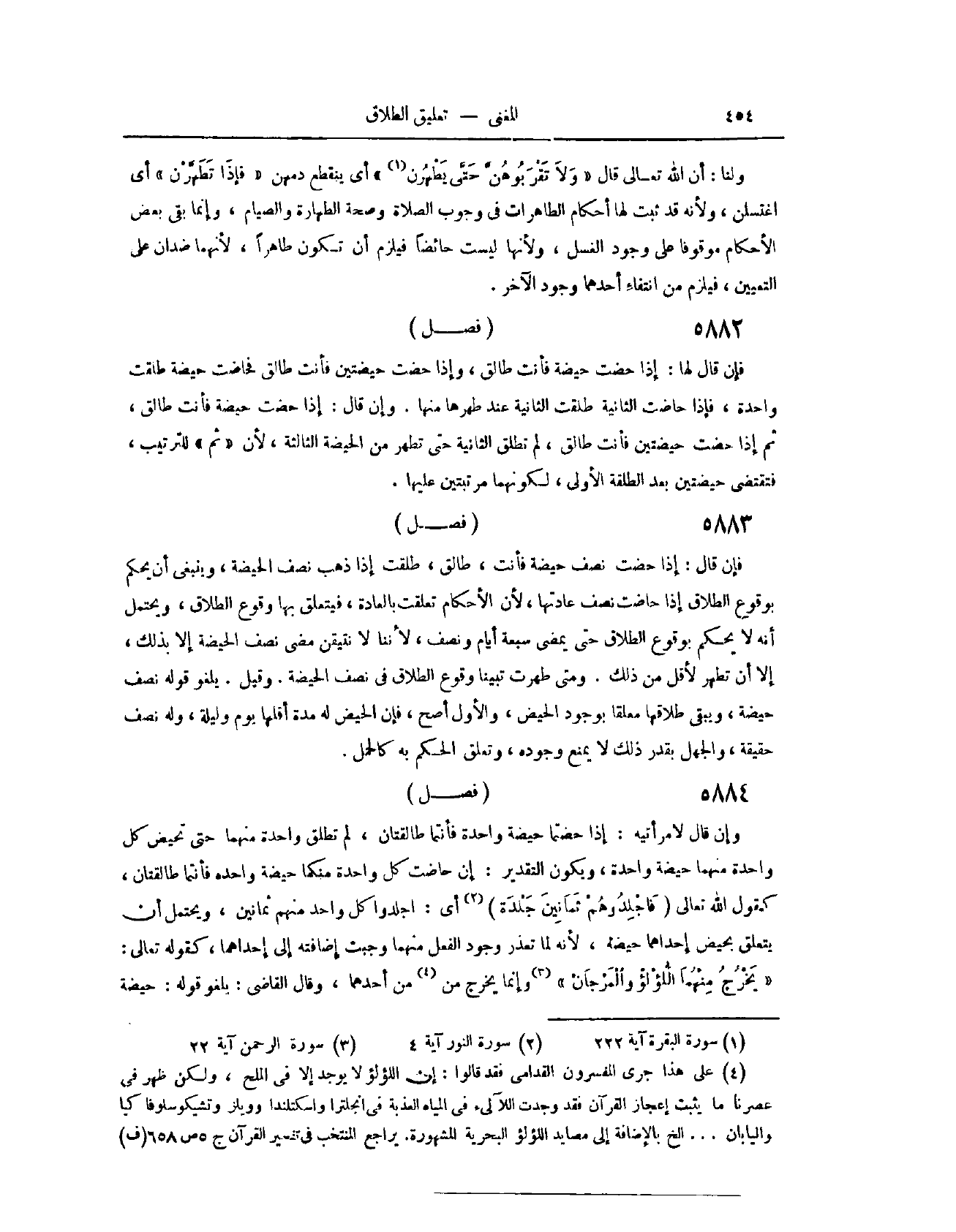 (٥٩٦٢) فَصْلٌ: وَإِنْ قَالَ لِامْرَأَتَيْهِ: إذَا حِضْتُمَا حَيْضَةً وَاحِدَةً، فَأَنْتُمَا طَالِقَتَانِ. لَمْ تَطْلُقْ وَاحِدَةٌ مِنْهُمَا حَتَّى تَحِيضَ كُلُّ وَاحِدَةٍ مِنْهُمَا حَيْضَةً وَاحِدَةً، وَيَكُونُ التَّقْدِيرُ: إنْ حَاضَتْ كُلُّ وَاحِدَةٍ مِنْكُمَا حَيْضَةً وَاحِدَةً، فَأَنْتُمَا طَالِقَتَانِ. كَقَوْلِ اللَّه تَعَالَى: {فَاجْلِدُوهُمْ ثَمَانِينَ جَلْدَةً} [النور: ٤] . أَيْ: اجْلِدُوا كُلَّ وَاحِدٍ مِنْهُمْ ثَمَانِينَ وَيَحْتَمِل أَنْ يَتَعَلَّقَ الطَّلَاقُ بِحَيْضِ إحْدَاهُمَا حَيْضَةً؛ لِأَنَّهُ لَمَّا تَعَذَّرَ وُجُودُ الْفِعْلِ مِنْهُمَا، وَجَبَتْ إضَافَته إلَى إحْدَاهُمَا، كَقَوْلِهِ تَعَالَى {يَخْرُجُ مِنْهُمَا اللُّؤْلُؤُ وَالْمَرْجَانُ} [الرحمن: ٢٢] . وَإِنَّمَا يَخْرُجُ مِنْ أَحَدِهِمَا. وَقَالَ الْقَاضِي: يَلْغُو قَوْلُهُ: حَيْضَةً