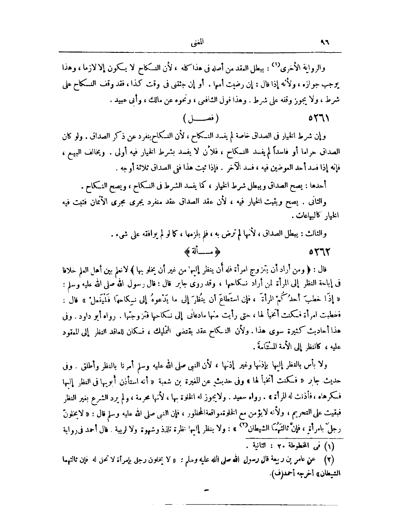 (٥٣٢٦) قَالَ: (وَمَنْ أَرَادَ أَنْ يَتَزَوَّجَ امْرَأَةً، فَلَهُ أَنْ يَنْظُرَ إلَيْهَا مِنْ غَيْرِ أَنْ يَخْلُوَ بِهَا) لَا نَعْلَمُ بَيْنَ أَهْلِ الْعِلْمِ خِلَافًا فِي إبَاحَةِ النَّظَرِ إلَى الْمَرْأَةِ لِمَنْ أَرَادَ نِكَاحَهَا وَقَدْ رَوَى جَابِرٌ قَالَ: قَالَ رَسُولُ اللَّهِ - صَلَّى اللَّهُ عَلَيْهِ وَسَلَّمَ -: «إذَا خَطَبَ أَحَدُكُمْ الْمَرْأَةَ، فَإِنْ اسْتَطَاعَ أَنْ يَنْظُرَ إلَى مَا يَدْعُوهُ إلَى نِكَاحِهَا، فَلْيَفْعَلْ قَالَ: فَخَطَبْت امْرَأَةً، فَكُنْت أَتَخَبَّأُ لَهَا، حَتَّى رَأَيْت مِنْهَا مَا دَعَانِي إلَى نِكَاحِهَا، فَتَزَوَّجْتُهَا» . رَوَاهُ أَبُو دَاوُد وَفِي هَذَا أَحَادِيثُ كَثِيرَةٌ سِوَى هَذَا؛ وَلِأَنَّ النِّكَاحَ عَقْدٌ يَقْتَضِي التَّمْلِيكَ، فَكَانَ لِلْعَاقِدِ النَّظَرُ إلَى الْمَعْقُودِ عَلَيْهِ، كَالنَّظَرِ إلَى الْأَمَةِ الْمُسْتَامَةِ وَلَا بَأْسَ بِالنَّظَرِ إلَيْهَا بِإِذْنِهَا وَغَيْرِ إذْنِهَا.