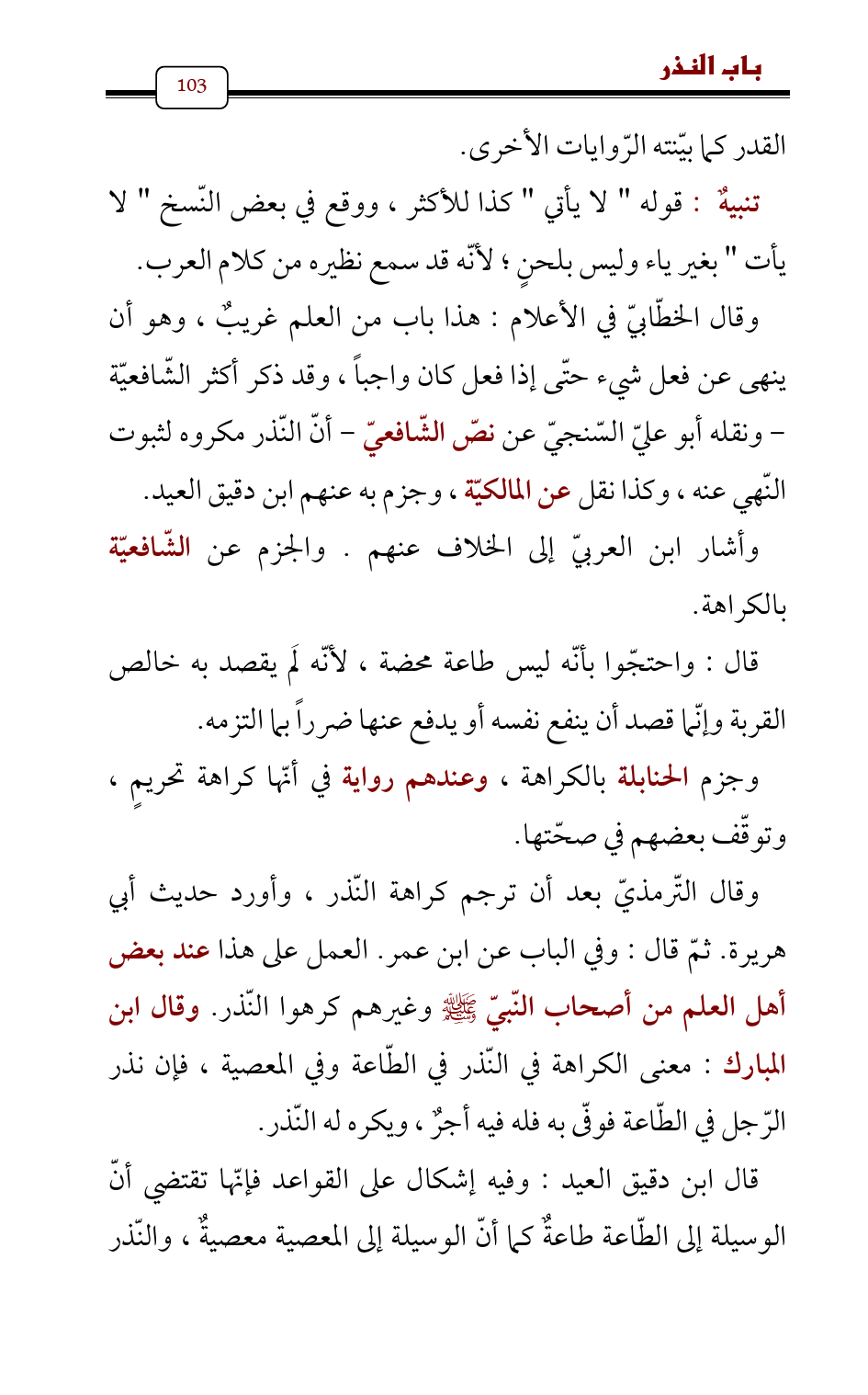 وقال الخطّابيّ في الأعلام: هذا باب من العلم غريبٌ، وهو أن ينهى عن فعل شيء حتّى إذا فعل كان واجباً، وقد ذكر أكثر الشّافعيّة - ونقله أبو عليّ السّنجيّ عن نصّ الشّافعيّ - أنّ النّذر مكروه لثبوت النّهي عنه , وكذا نقل عن المالكيّة , وجزم به عنهم ابن دقيق العيد.
