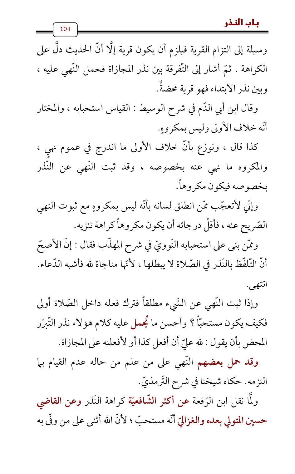 وإذا ثبت النّهي عن الشّيء مطلقاً فترك فعله داخل الصّلاة أولى فكيف يكون مستحبّاً؟ وأحسن ما يُحمل عليه كلام هؤلاء نذر التّبرّر المحض بأن يقول: لله عليّ أن أفعل كذا أو لأفعلنه على المجازاة.