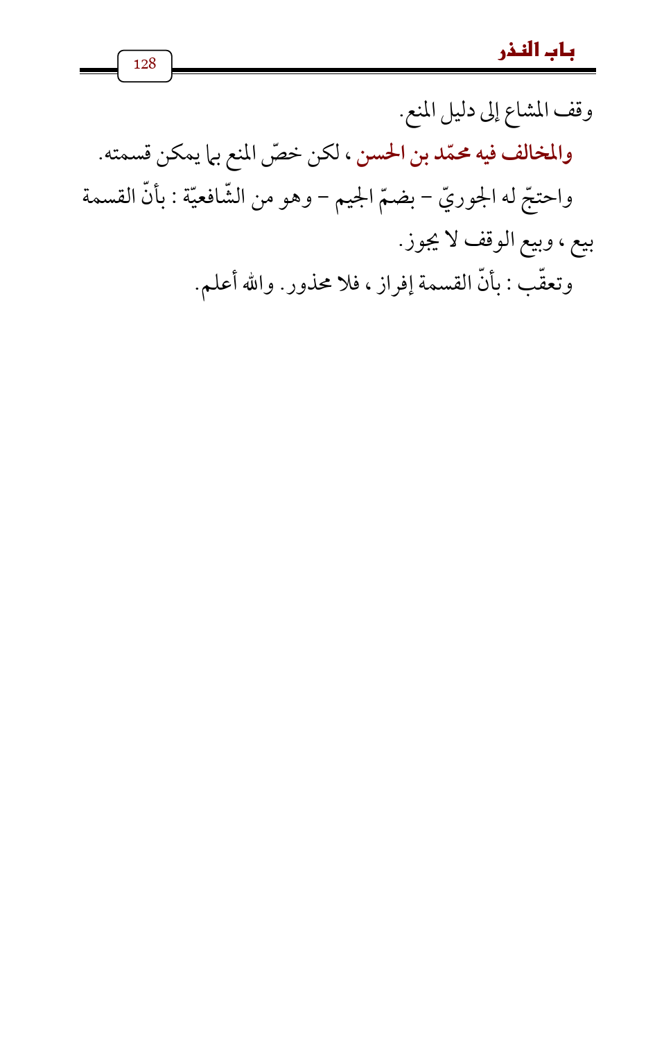 وقف المشاع إلى دليل المنع.