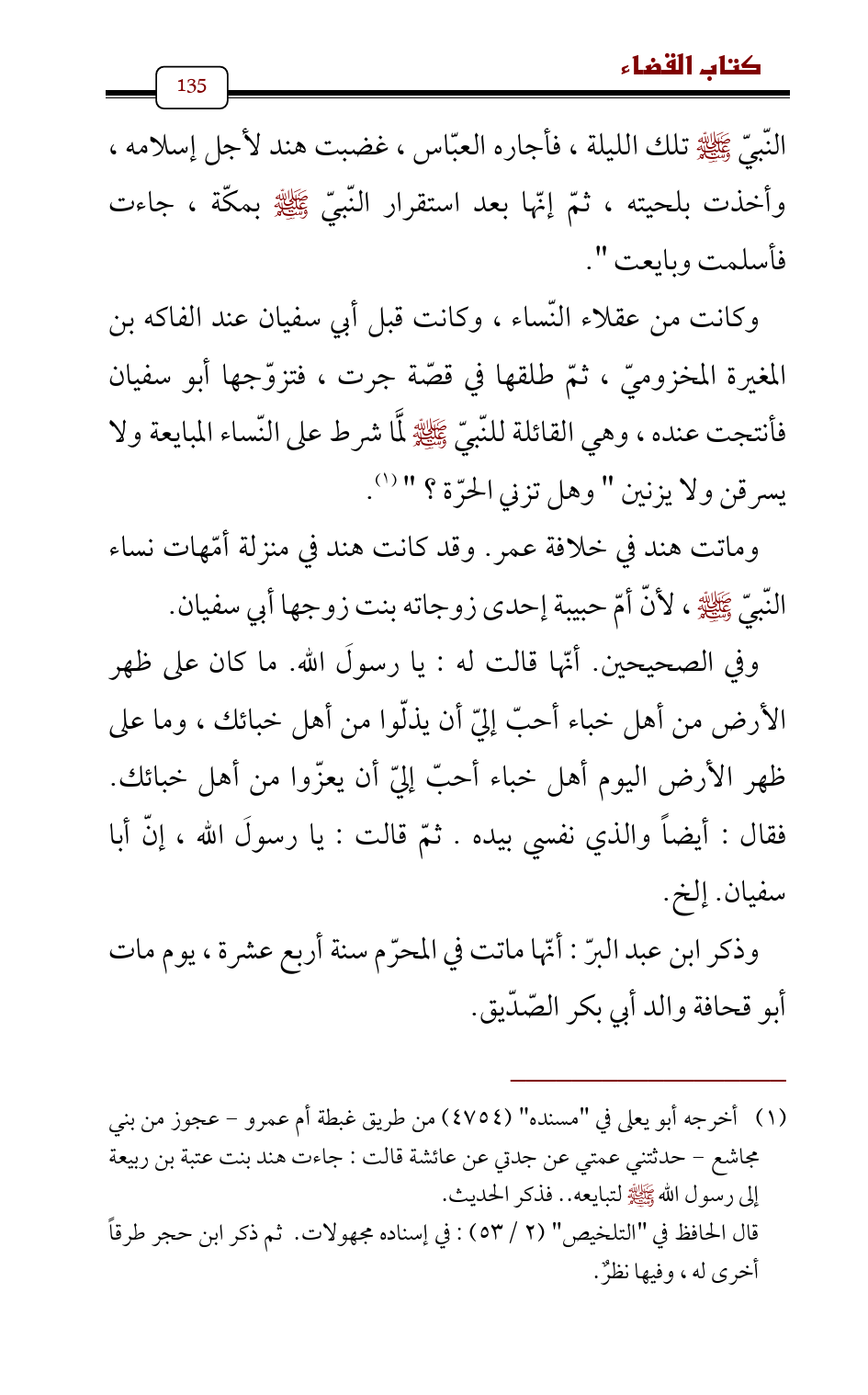 النّبيّ - صلى الله عليه وسلم - تلك الليلة , فأجاره العبّاس , غضبت هند لأجل إسلامه، وأخذت بلحيته , ثمّ إنّها بعد استقرار النّبيّ - صلى الله عليه وسلم - بمكّة , جاءت فأسلمت وبايعت ".