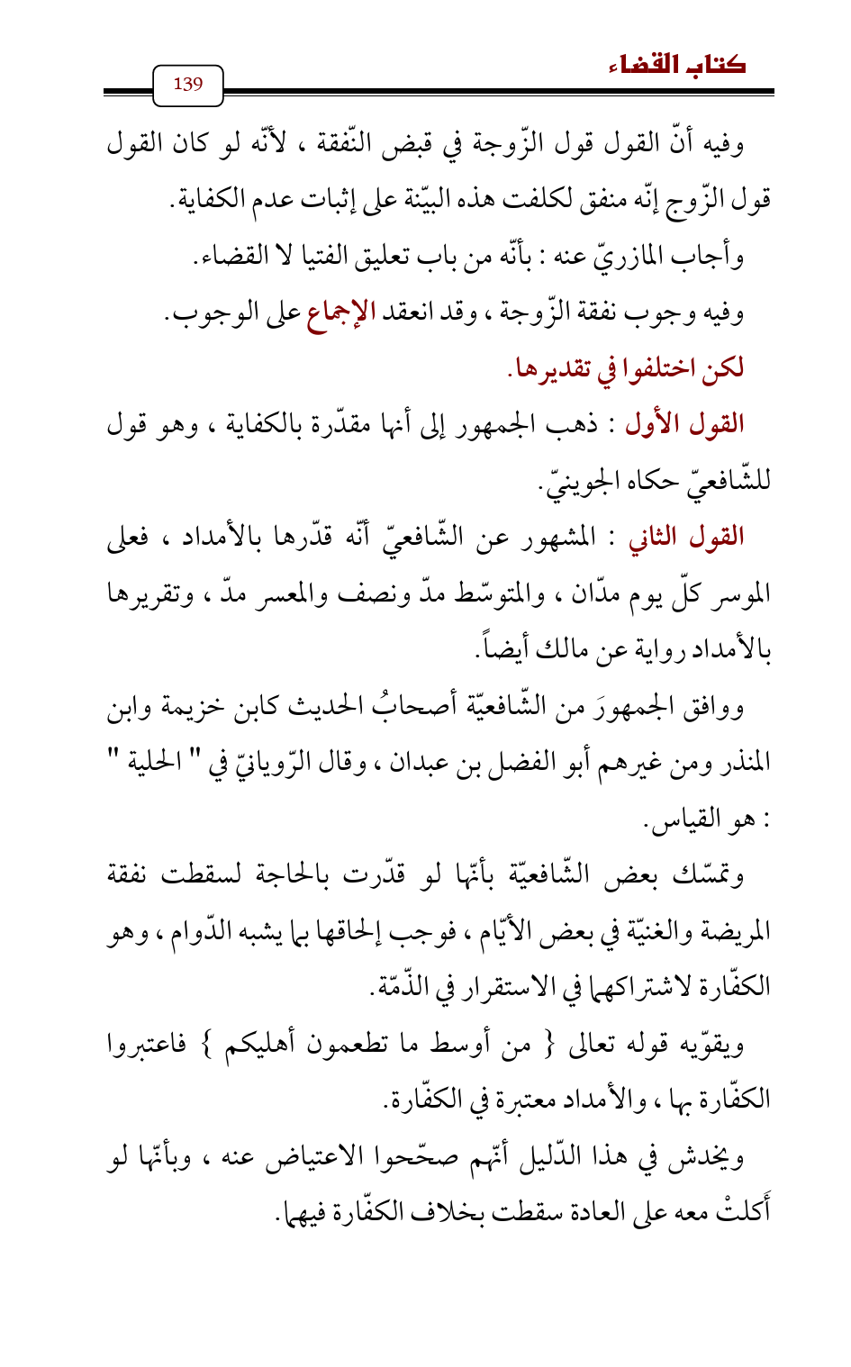 القول الأول: ذهب الجمهور إلى أنها مقدّرة بالكفاية، وهو قول للشّافعيّ حكاه الجوينيّ.