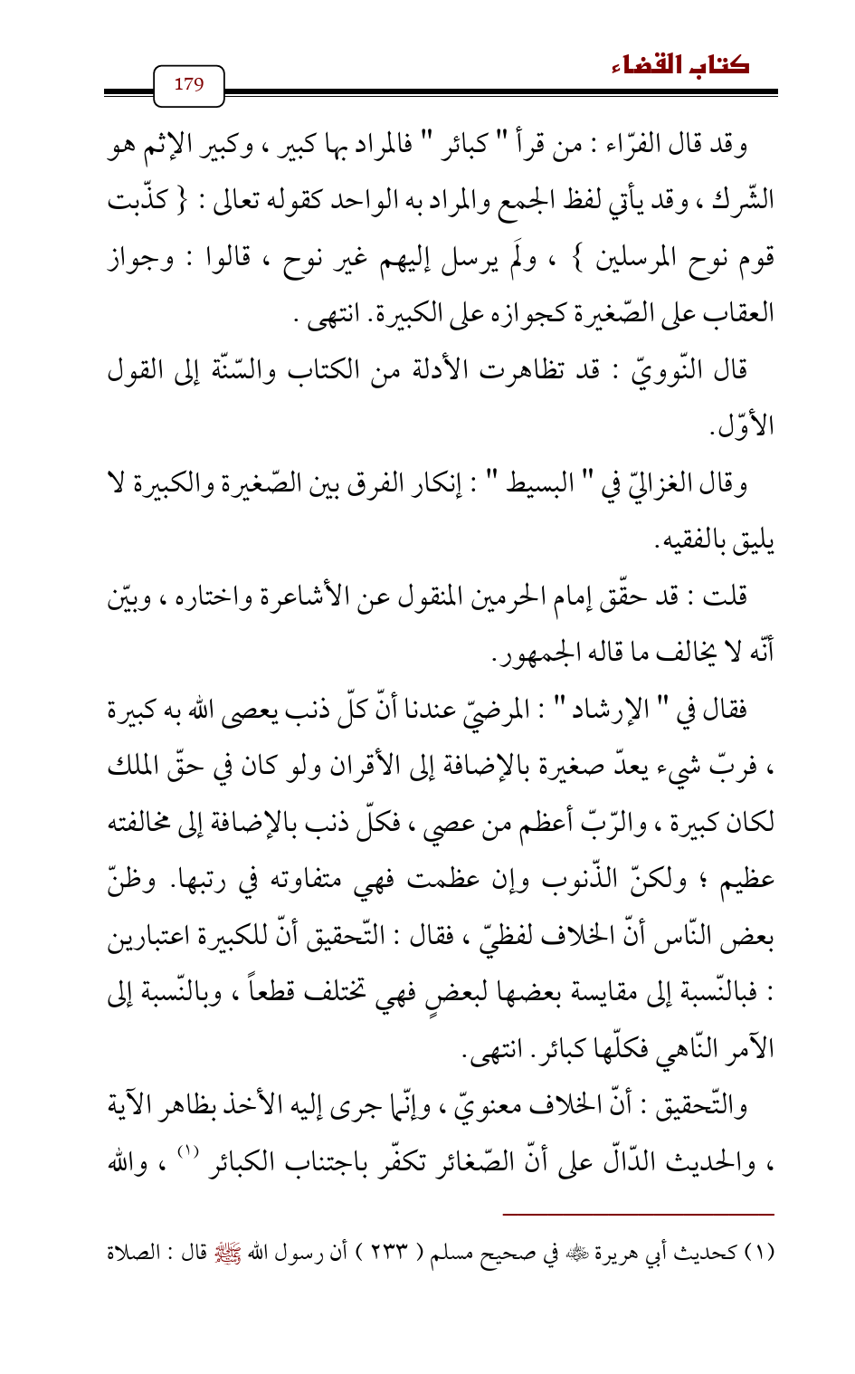 وقال الغزاليّ في " البسيط ": إنكار الفرق بين الصّغيرة والكبيرة لا يليق بالفقيه.
