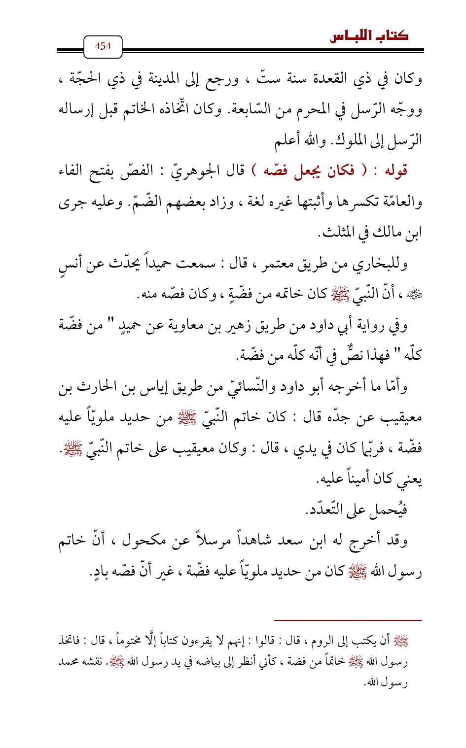 وكان في ذي القعدة سنة ستّ، ورجع إلى المدينة في ذي الحجّة، ووجّه الرّسل في المحرم من السّابعة. وكان اتّخاذه الخاتم قبل إرساله الرّسل إلى الملوك. والله أعلم