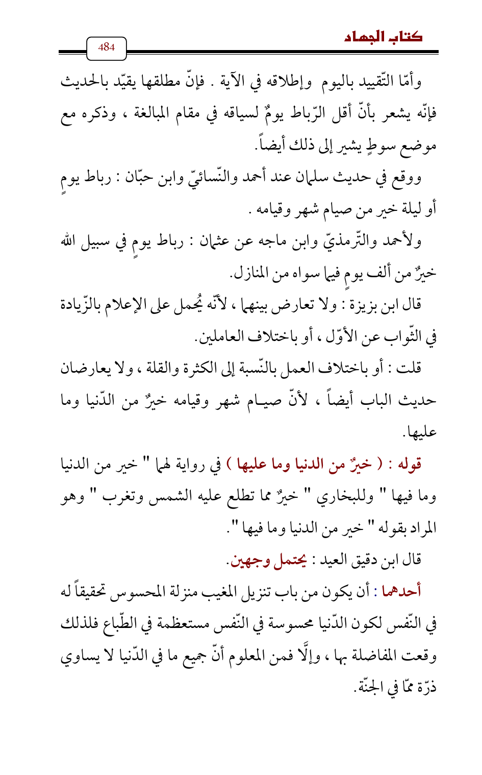 قال ابن دقيق العيد: يحتمل وجهين.