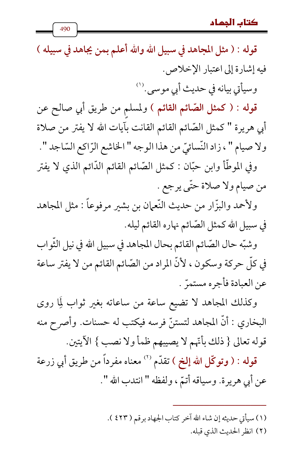 وفي الموطّأ وابن حبّان: كمثل الصّائم القائم الدّائم الذي لا يفتر من صيام ولا صلاة حتّى يرجع.