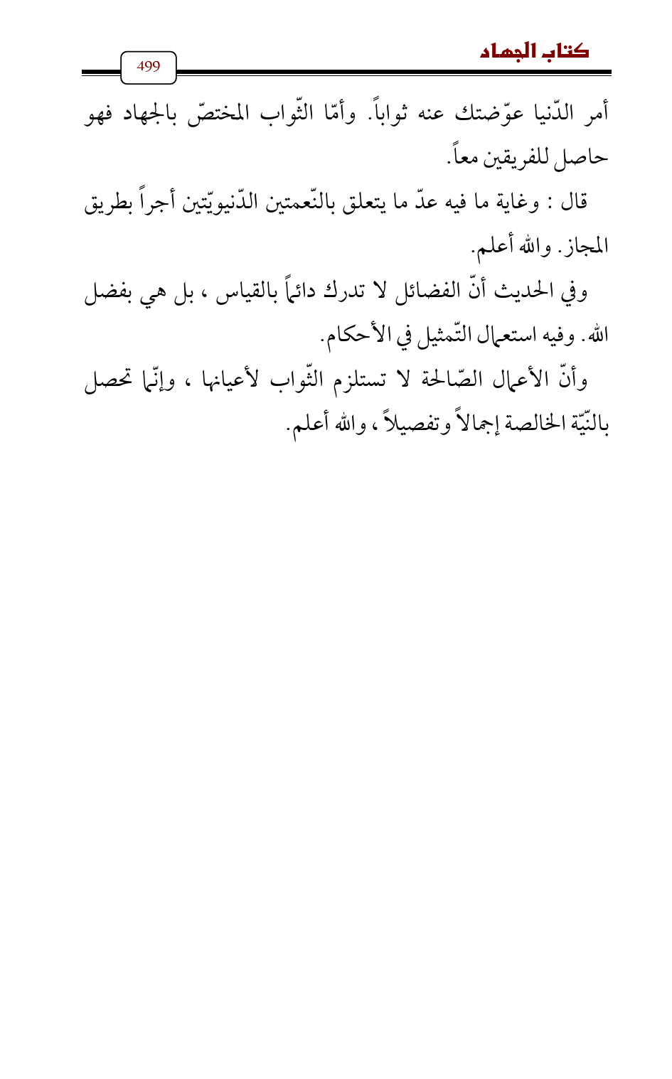 أمر الدّنيا عوّضتك عنه ثواباً. وأمّا الثّواب المختصّ بالجهاد فهو حاصل للفريقين معاً.