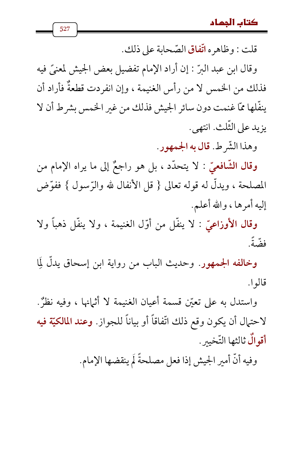 وقال الشّافعيّ: لا يتحدّد، بل هو راجعٌ إلى ما يراه الإمام من المصلحة، ويدلّ له قوله تعالى {قل الأنفال لله والرّسول} ففوّض إليه أمرها، والله أعلم.