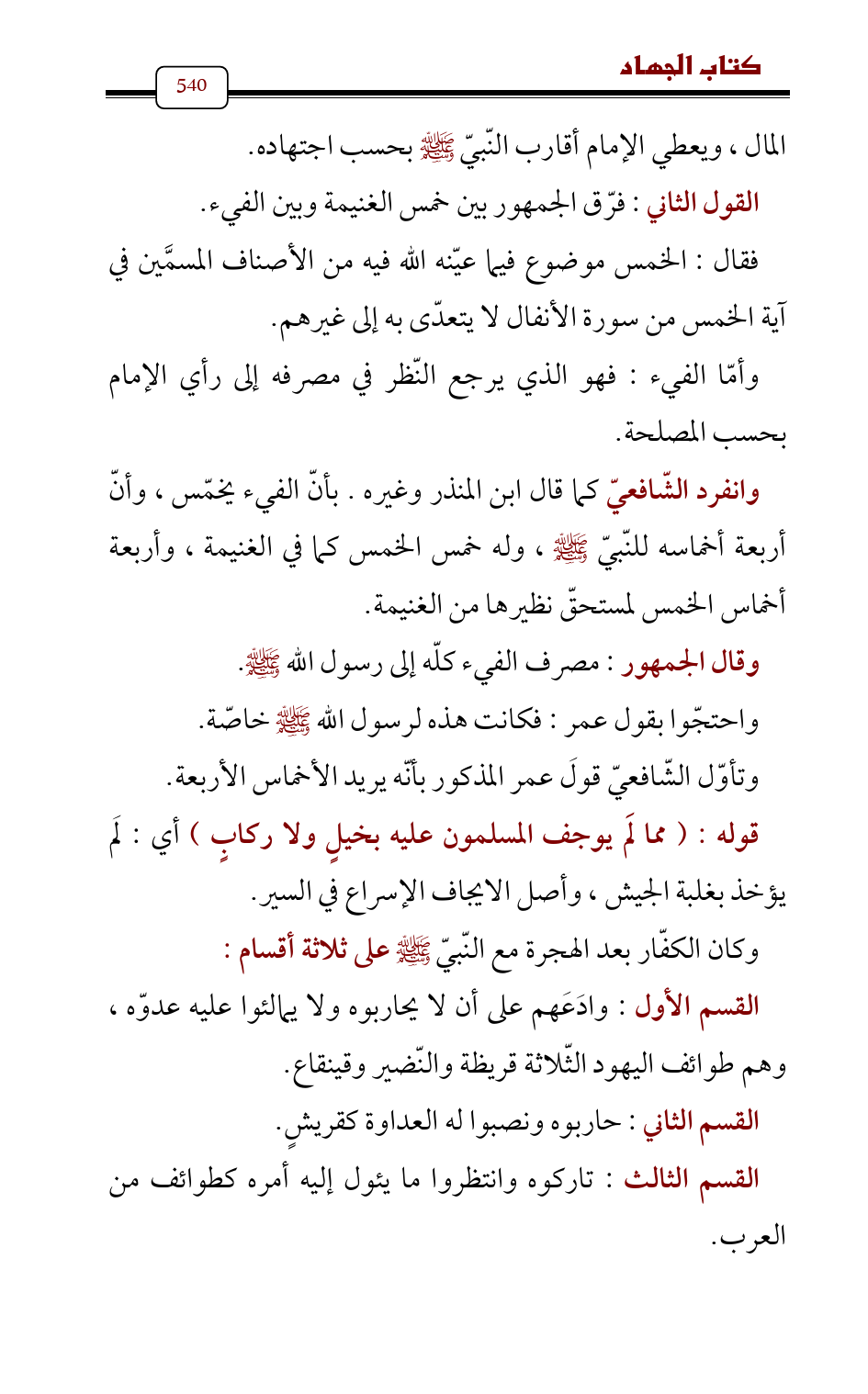 وقال الجمهور: مصرف الفيء كلّه إلى رسول الله - صلى الله عليه وسلم -.