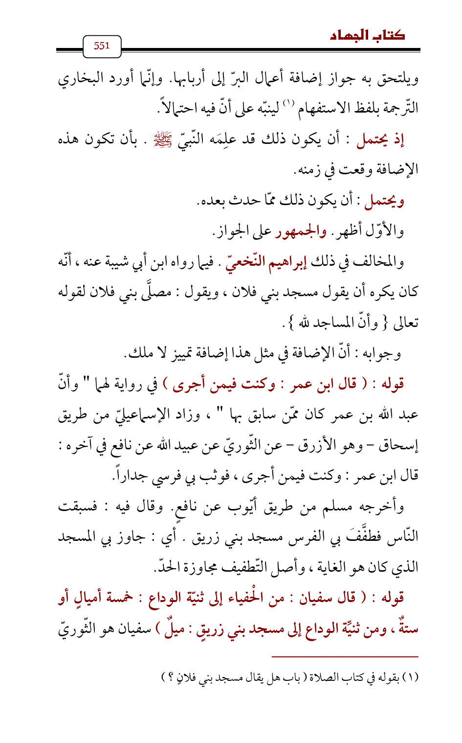 (¬1) بقوله في كتاب الصلاة (باب هل يقال مسجد بني فلانٍ؟)