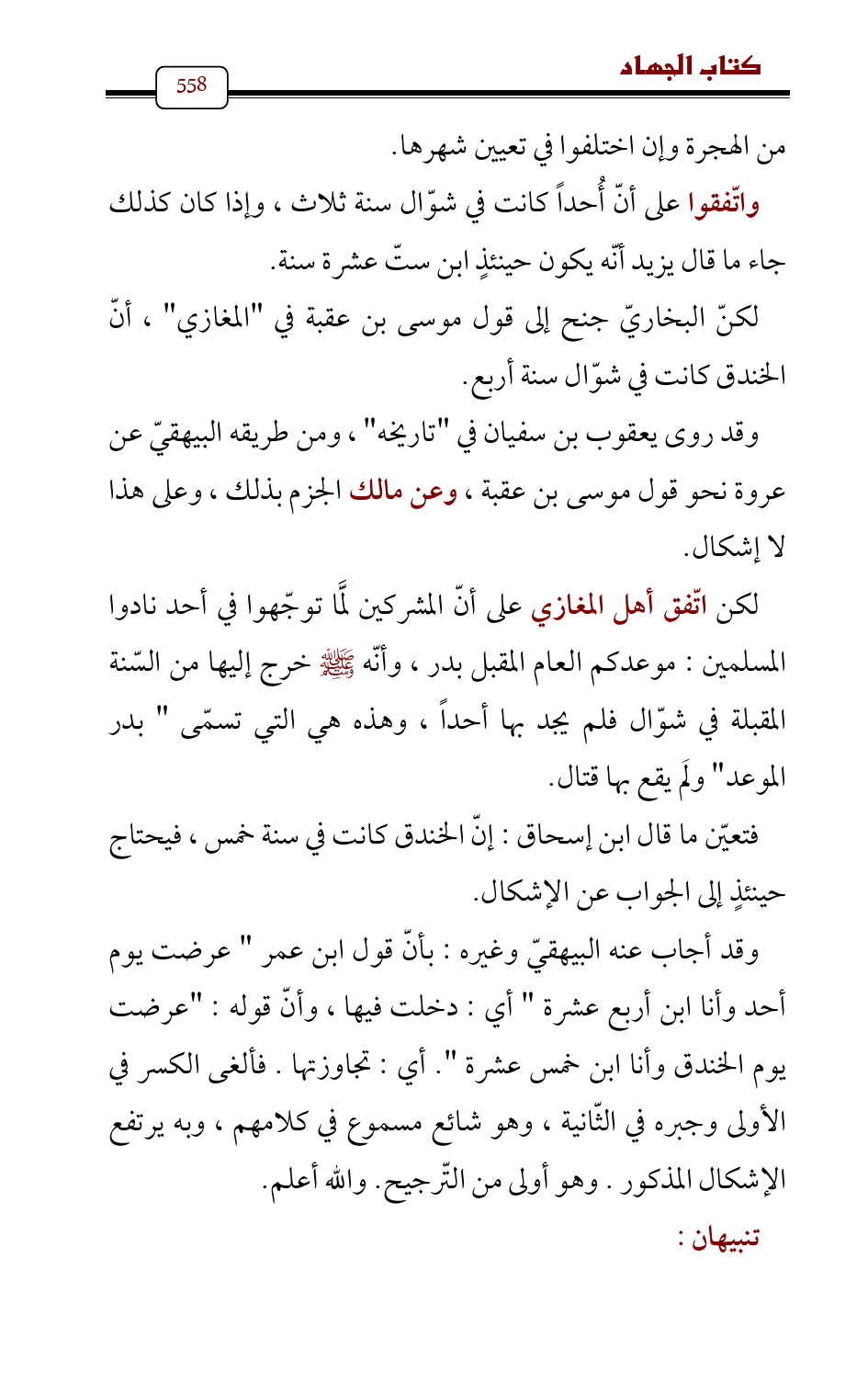 وقد روى يعقوب بن سفيان في " تاريخه " , ومن طريقه البيهقيّ عن عروة نحو قول موسى بن عقبة، وعن مالك الجزم بذلك، وعلى هذا لا إشكال.
