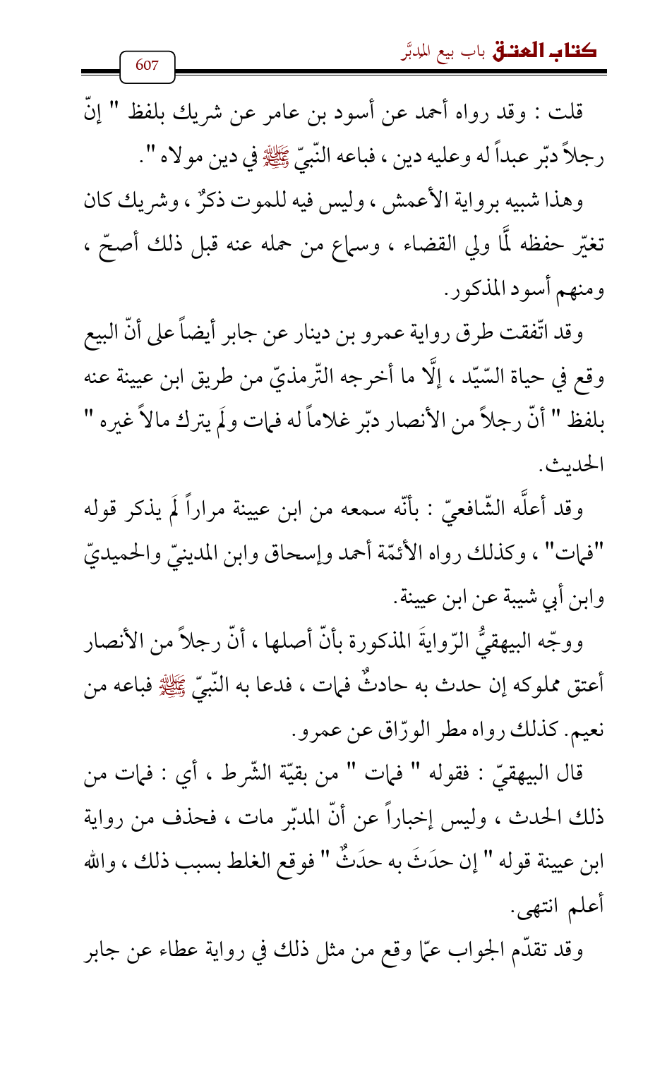 ووجّه البيهقيُّ الرّوايةَ المذكورة بأنّ أصلها , أنّ رجلاً من الأنصار أعتق مملوكه إن حدث به حادثٌ فمات، فدعا به النّبيّ - صلى الله عليه وسلم - فباعه من نعيم. كذلك رواه مطر الورّاق عن عمرو.