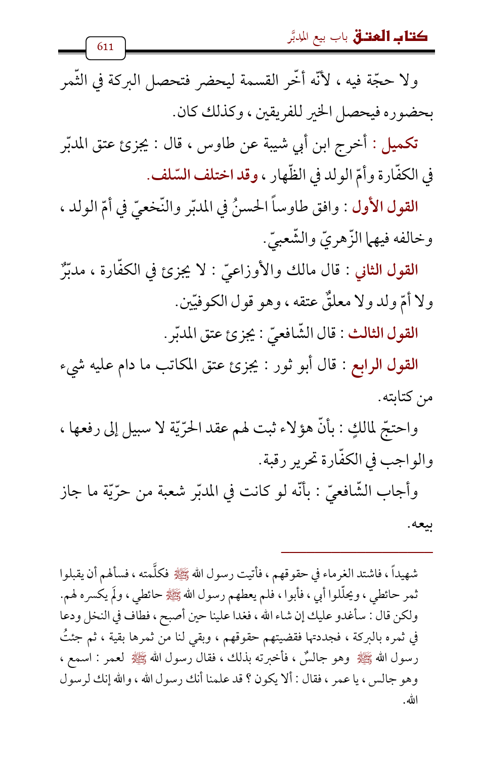 تكميل: أخرج ابن أبي شيبة عن طاوس , قال: يجزئ عتق المدبّر في الكفّارة وأمّ الولد في الظّهار، وقد اختلف السّلف.