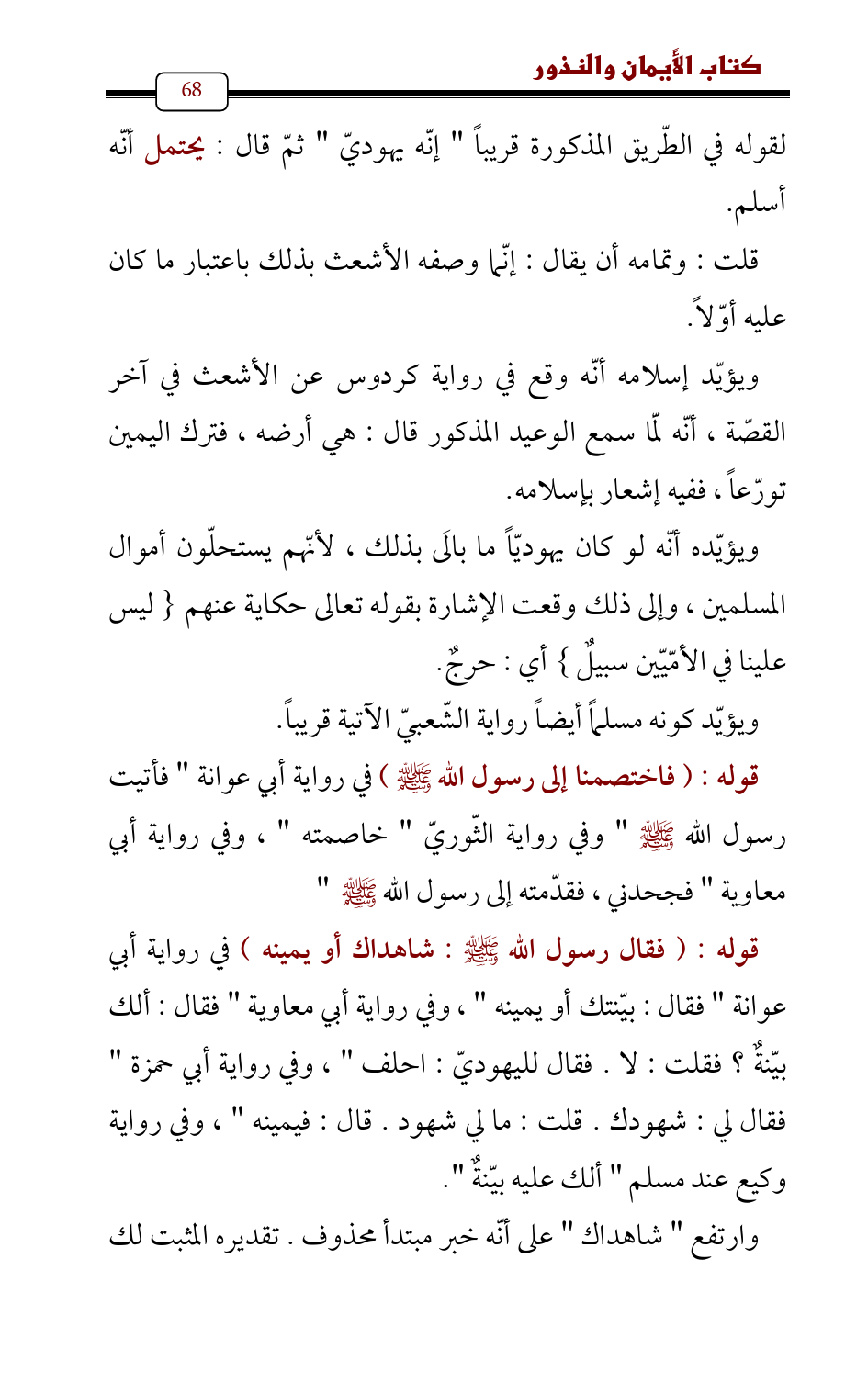 ويؤيّد إسلامه أنّه وقع في رواية كردوس عن الأشعث في آخر القصّة , أنّه لَمّا سمع الوعيد المذكور قال: هي أرضه، فترك اليمين تورّعاً، ففيه إشعار بإسلامه.