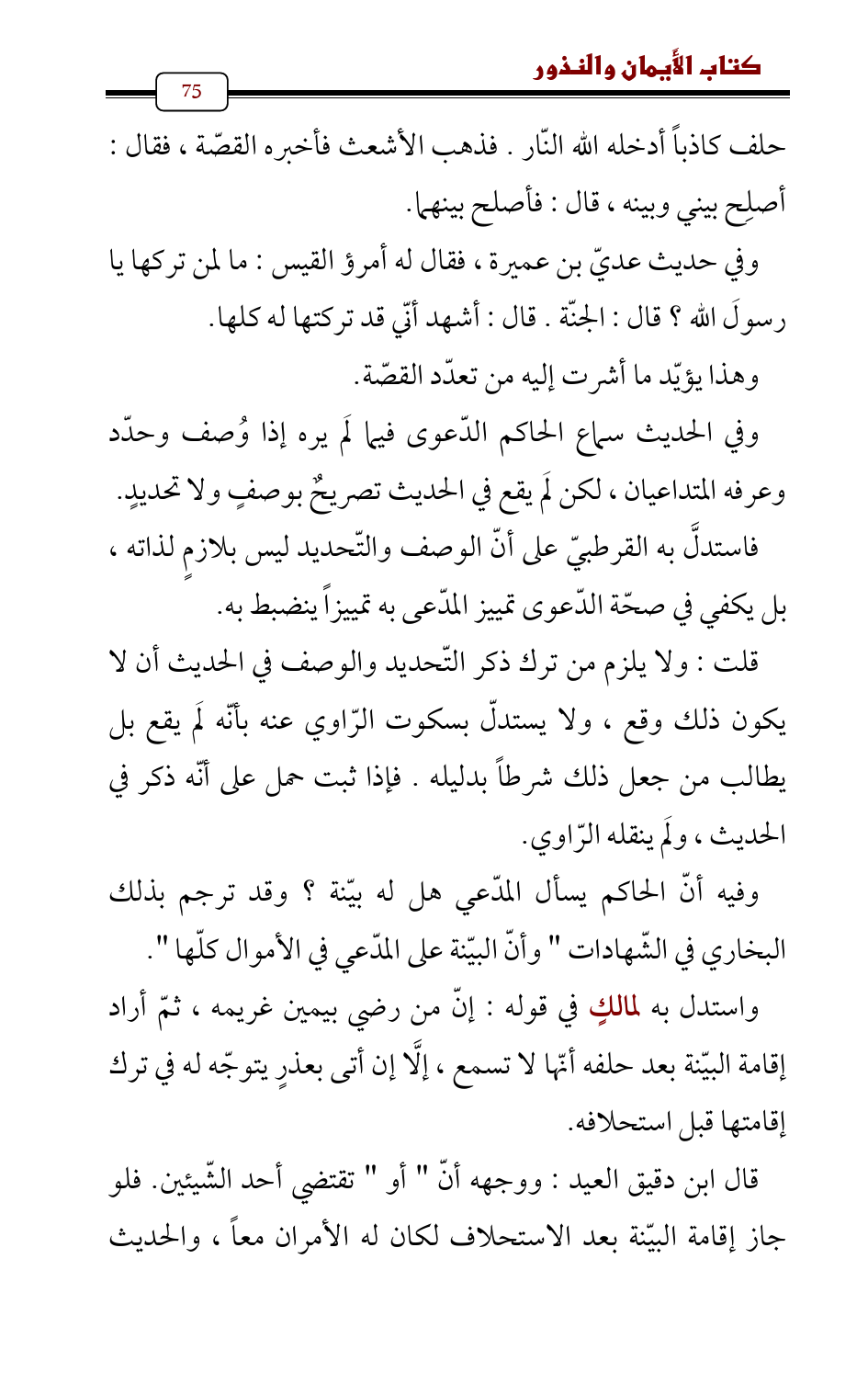 واستدل به لمالكٍ في قوله: إنّ من رضي بيمين غريمه , ثمّ أراد إقامة البيّنة بعد حلفه أنّها لا تسمع , إلَّا إن أتى بعذرٍ يتوجّه له في ترك إقامتها قبل استحلافه.
