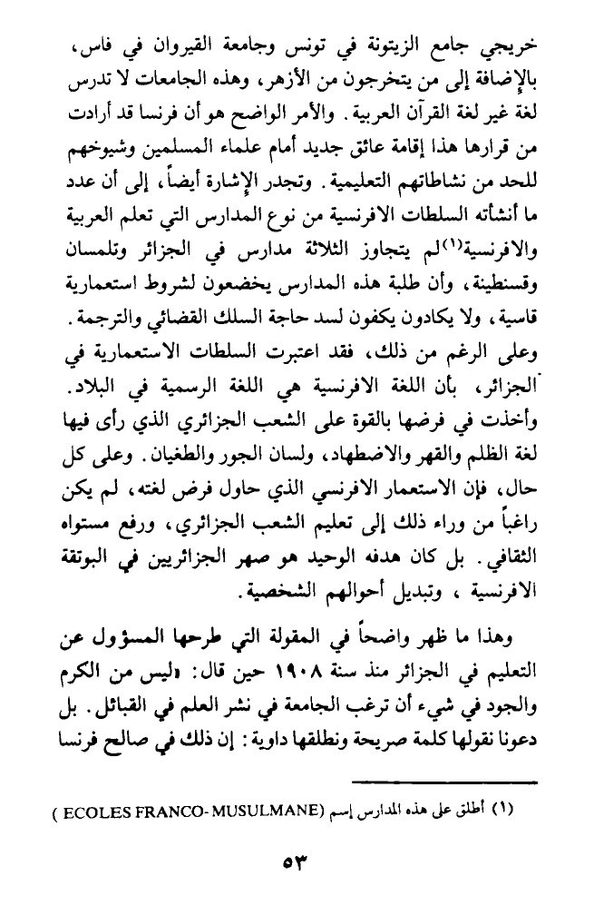 (¬1) أطلق على هذه المدارس اسم (ECOLES FRANCO - MUSULMANE).