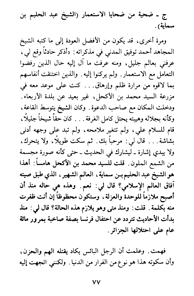ج - ضحية من ضحايا الاستعمار (الشيخ عبد الحليم بن سماية).