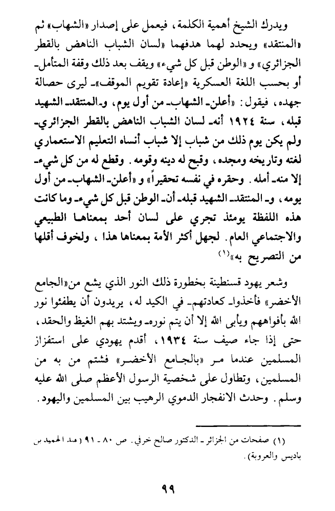 (¬1) صفحات من الجزائر - الدكتور صالح خرفي. ص 80 - 91 (عبد الحميد بن باديس والعروبة).